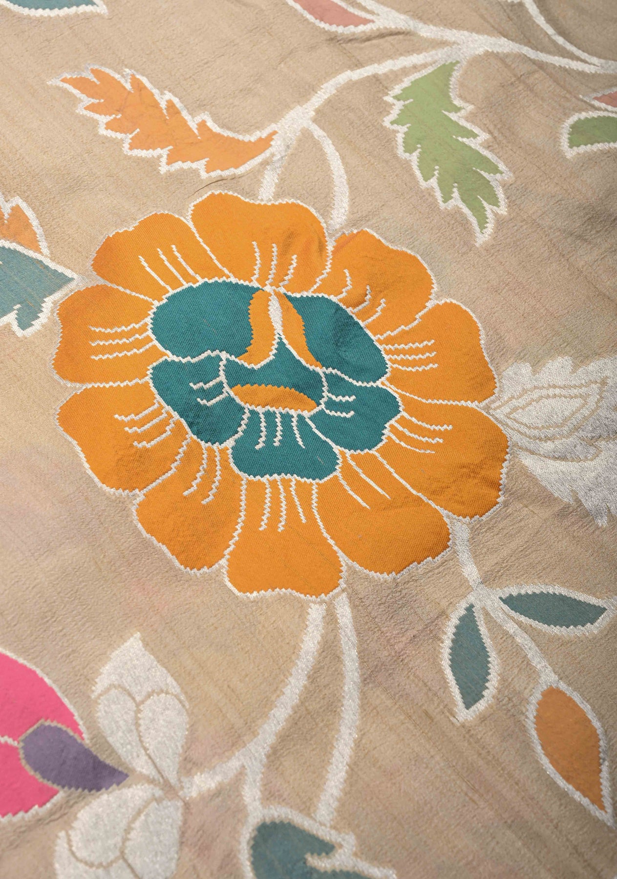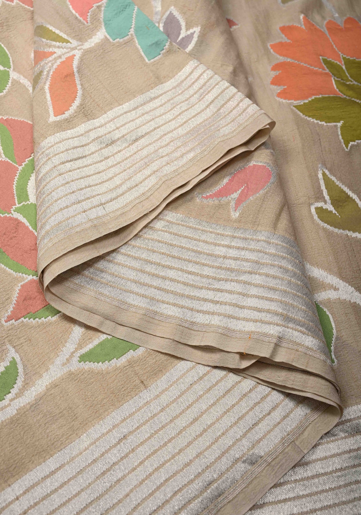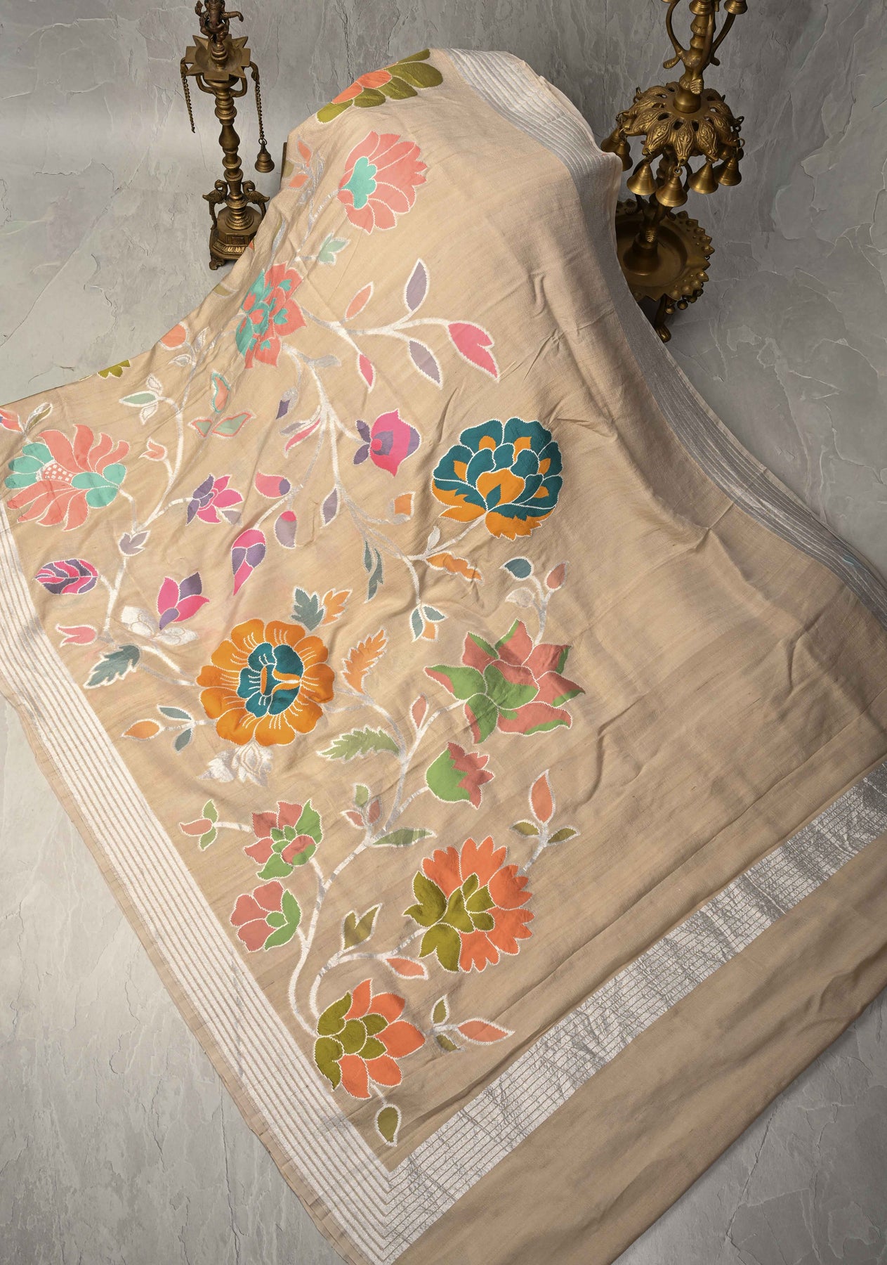 Cream Banarasi Tussar Georgette Saree with Meenakari Floral Jaal and Zari Border | SILK MARK CERTIFIED