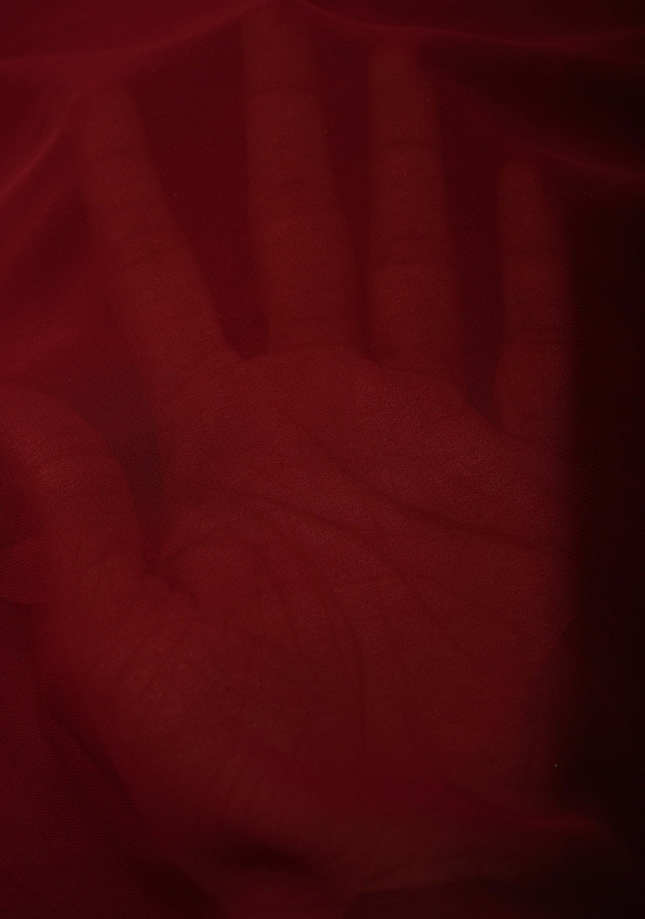 Celebrate artistic elegance with this Garnet Georgette Saree, beautifully adorned with hand-painted lotus and fish motifs that symbolize grace, prosperity, and harmony. Crafted from lightweight georgette, the saree drapes fluidly for a soft, graceful silhouette. The intricate hand painting adds a distinctive handcrafted charm, making this saree an ideal choice for festive occasions, cultural events, and elegant evening wear. Style it with understated jewelry to let the artwork shine.