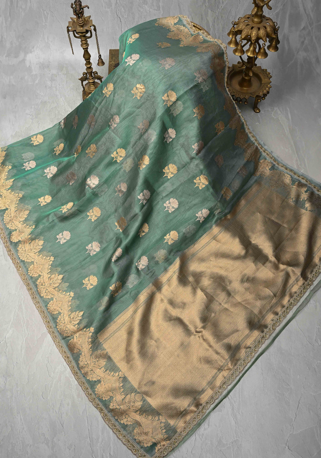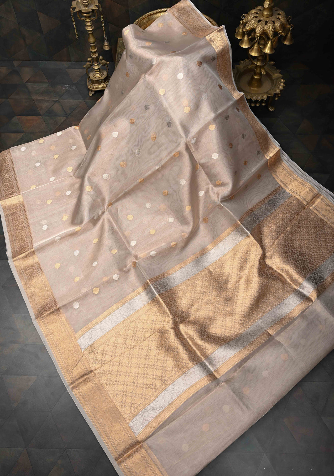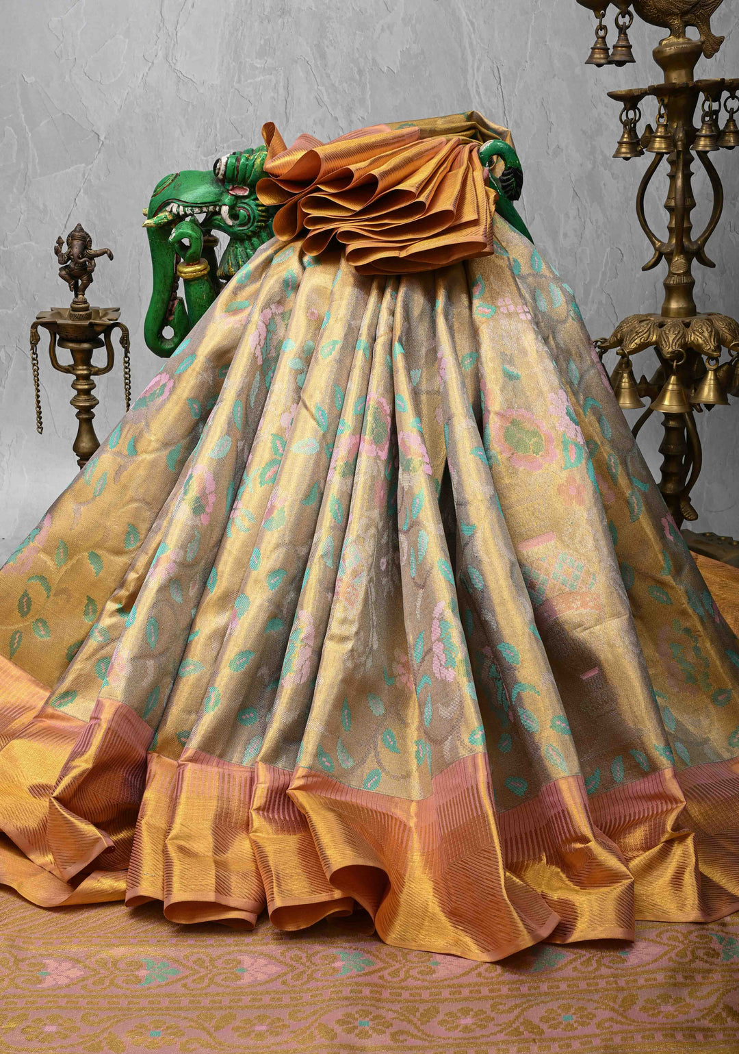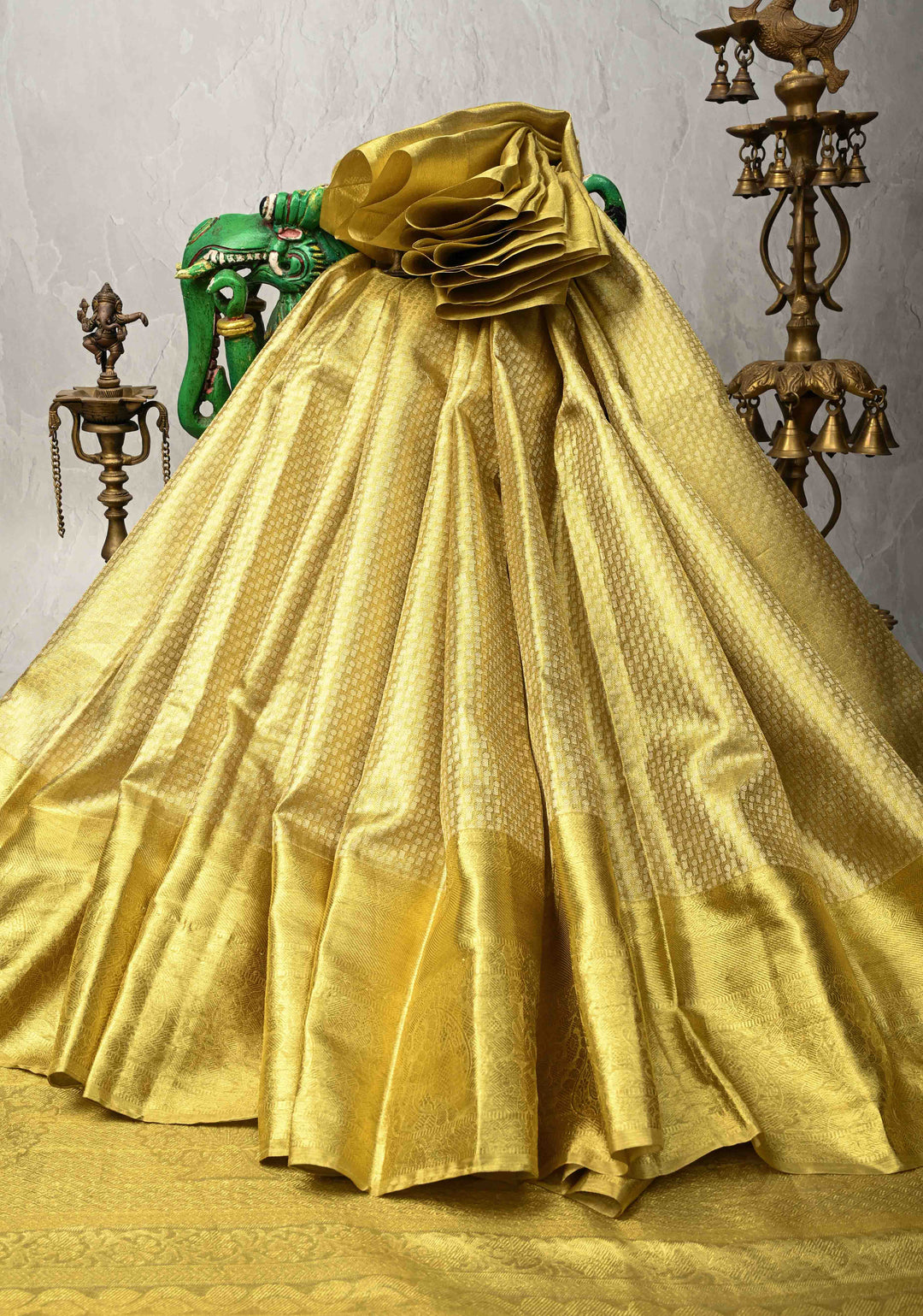 Golden sarees signify wealth, prosperity, and celebration—making them an essential part of Indian weddings and festivals.