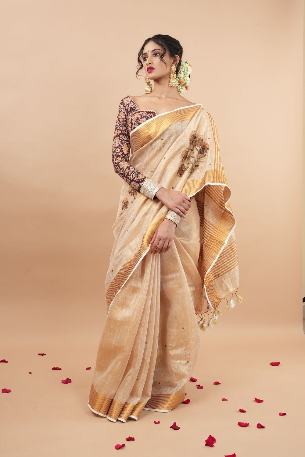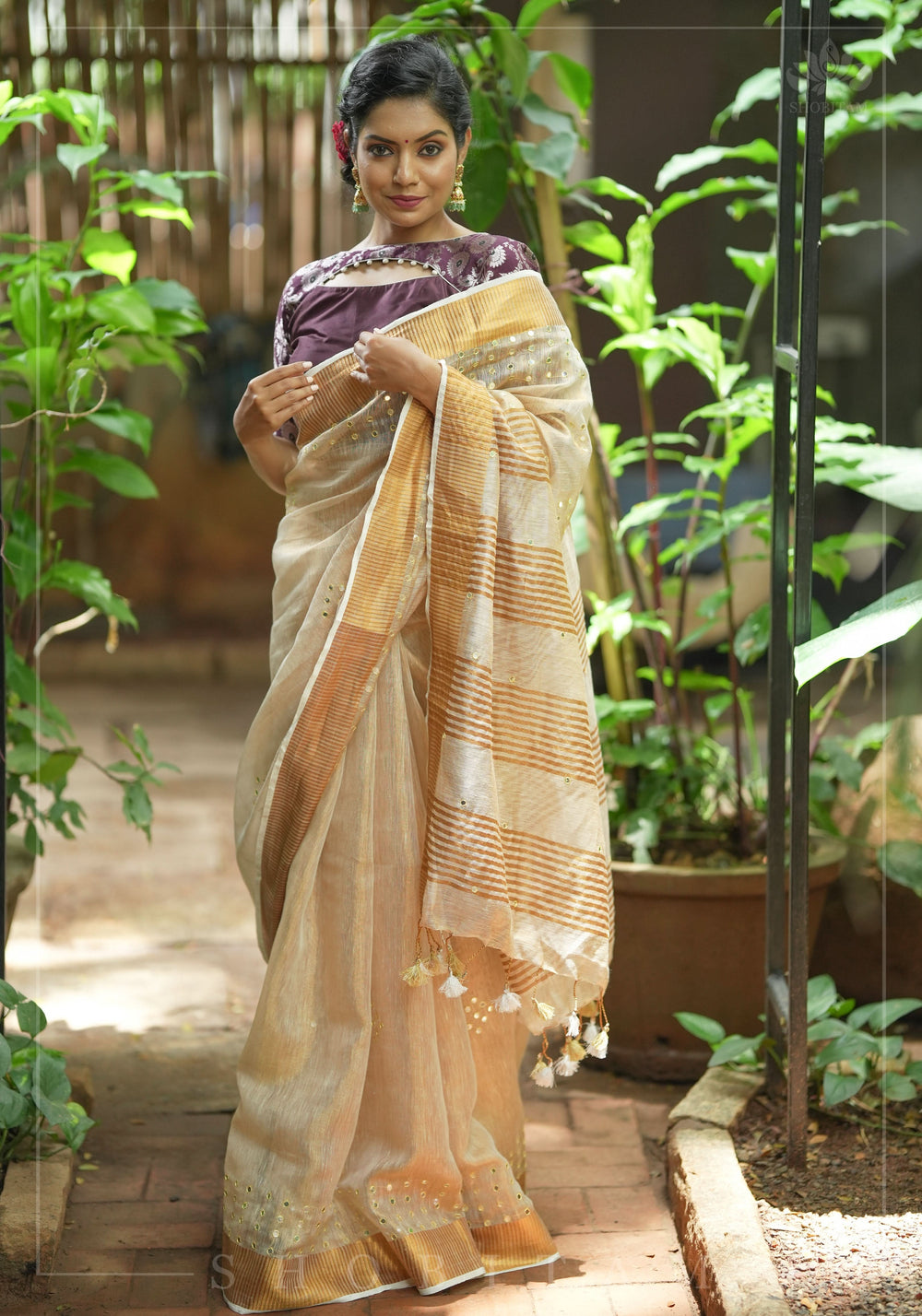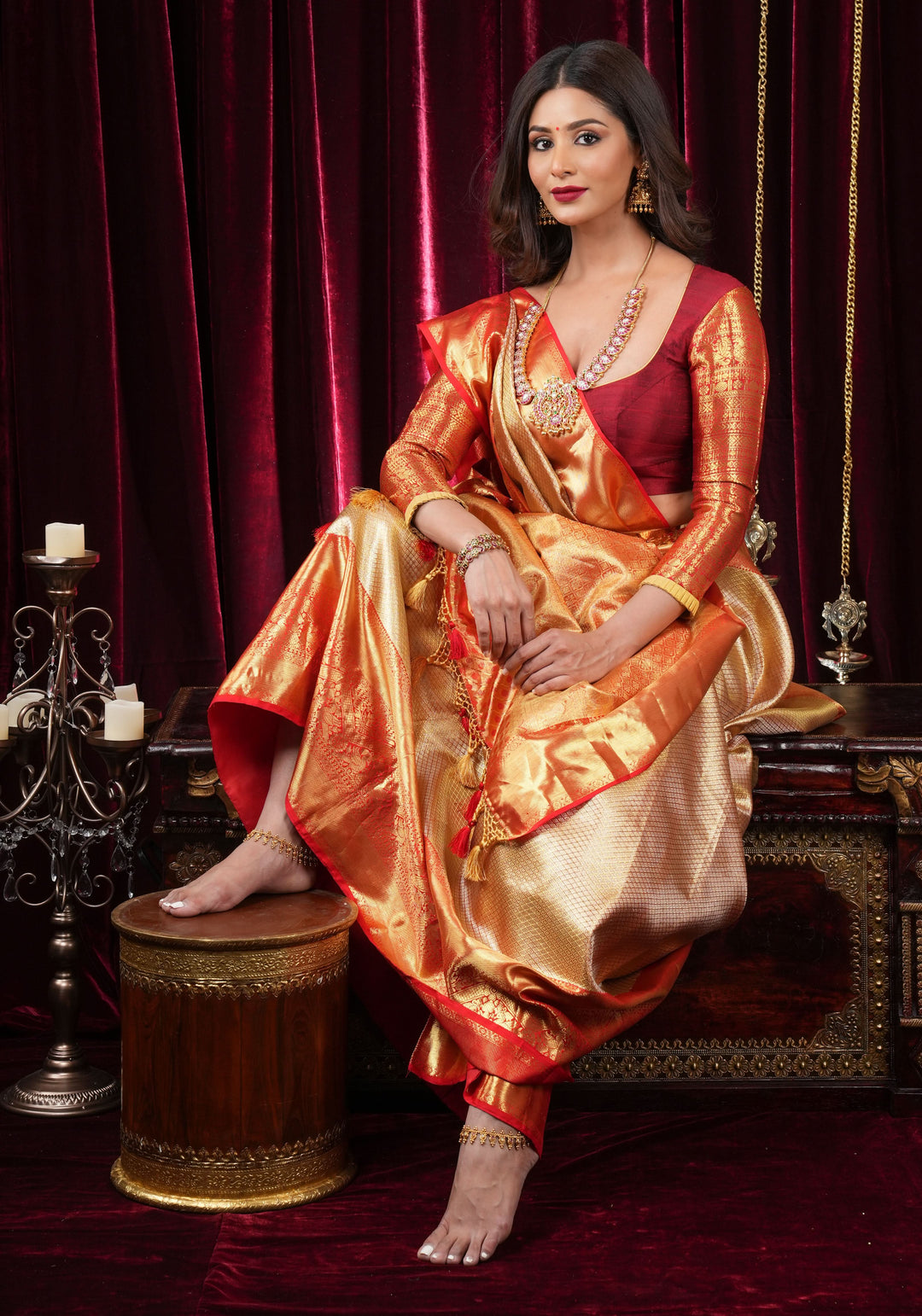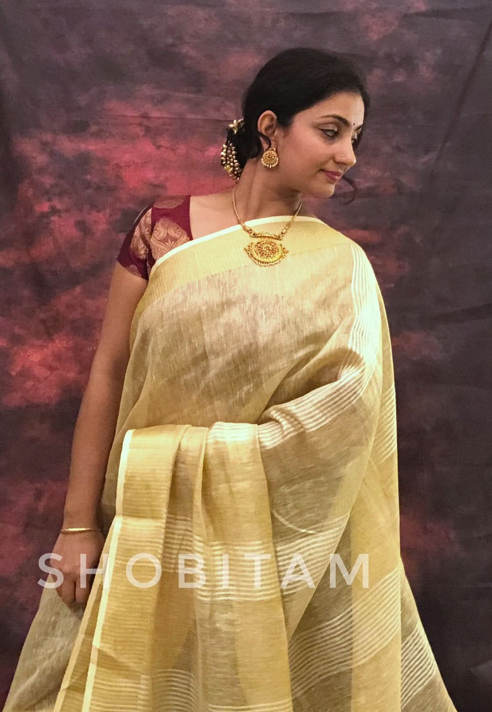 Elevate your saree game with Shobitam—a brand deeply committed to providing sarees that blend tradition with modern aesthetics. Feel the radiance of pure gold wrapped around you. Start browsing your golden saree today!