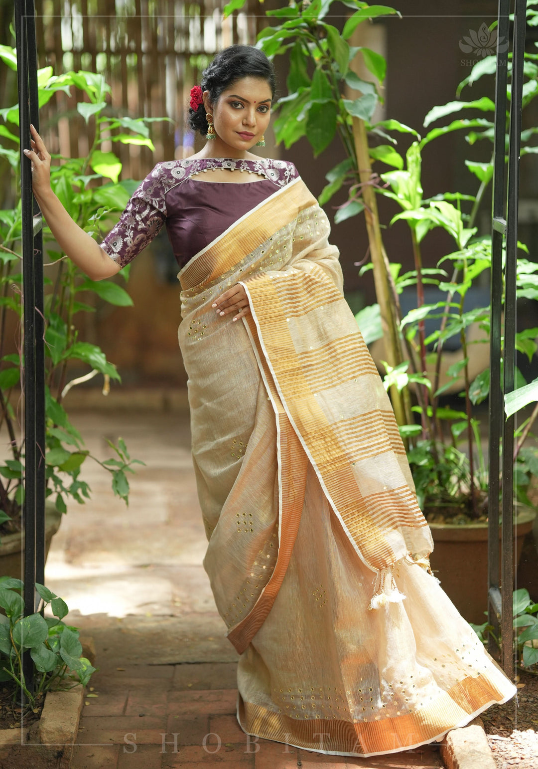 Explore Shobitam’s exclusive range of golden sarees, where tradition meets innovation: