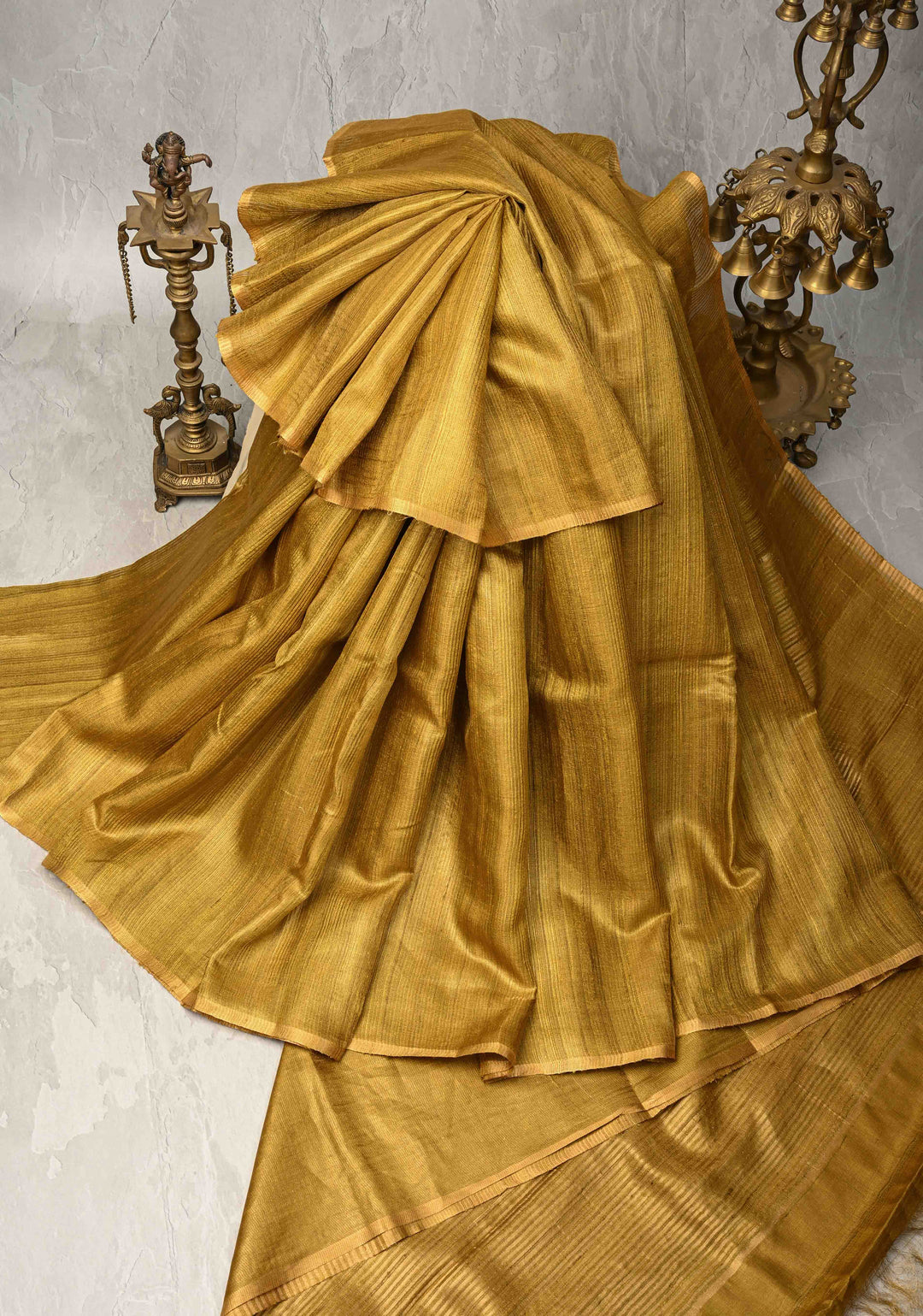 Golden sarees are the epitome of elegance. From their opulent zari weaves to their delicate craft, they manage to balance tradition with contemporary styling, making them ideal for any event.