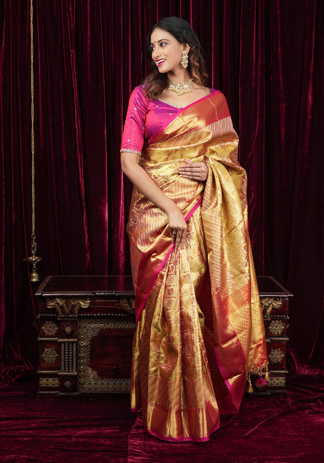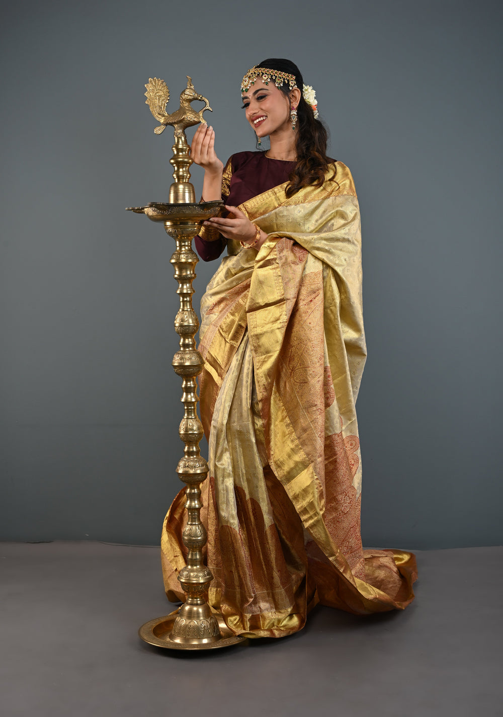 Each golden saree is a masterpiece, woven with love and creativity. Choose the one that matches your story!