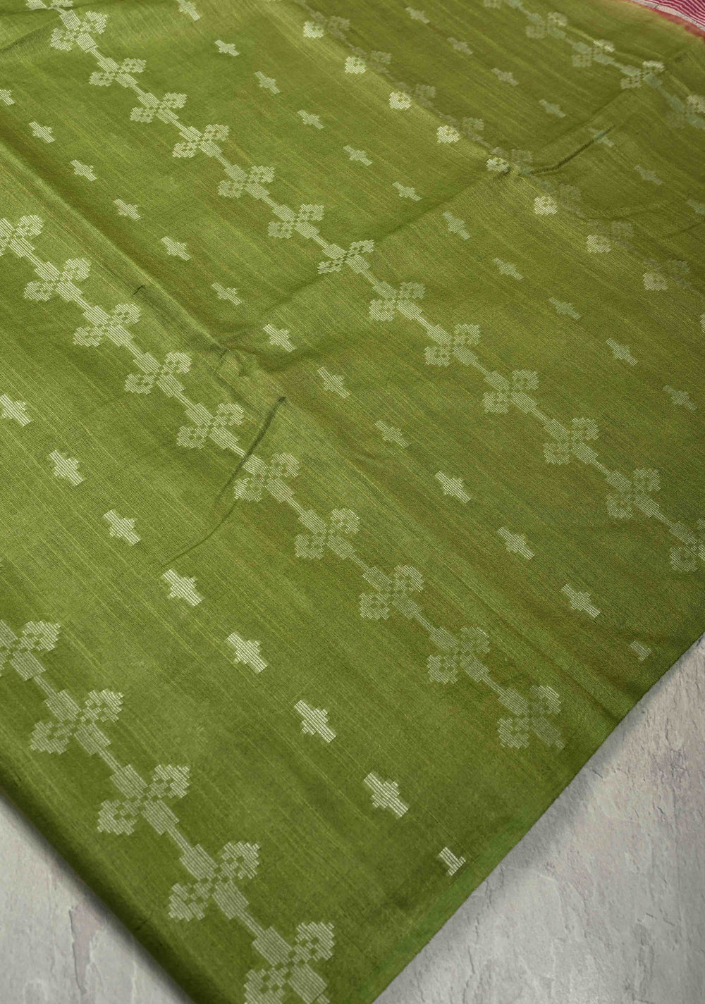 Moss Green Borderless Semi Tussar Saree with Thread and Muted Zari Buttas