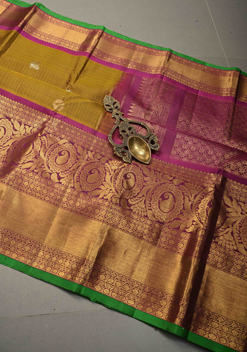 Exquisite Celebrity Grand Brocade Kanjivaram Pure Silk Saree in Leaf Green with Intricate Pallu and Zari | SILK MARK CERTIFIED