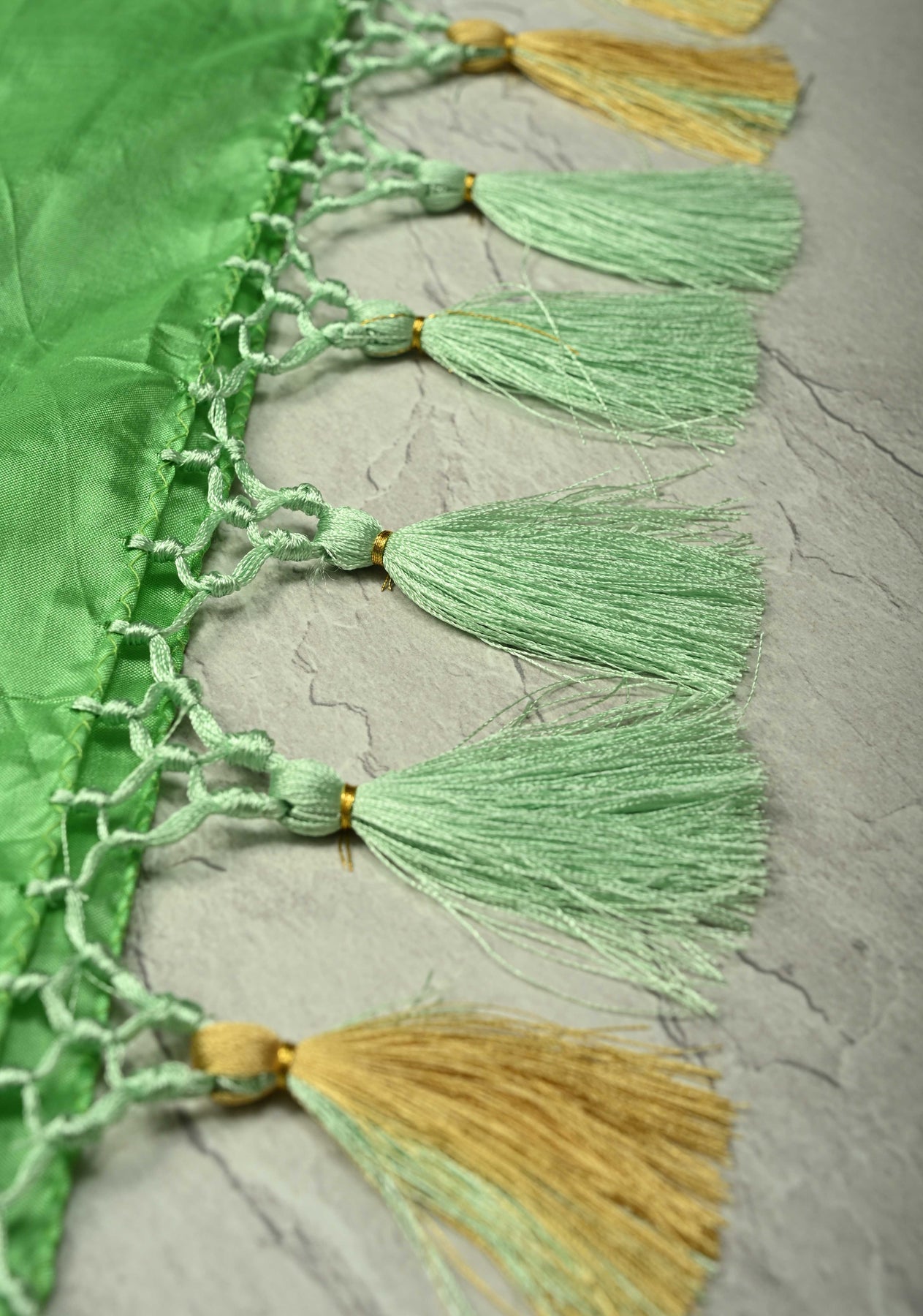This saree is ready to wear with fall and pico done. Handmade silk tassels adorn the pallu and add more grace to it. An unstitched blouse fabric is included.