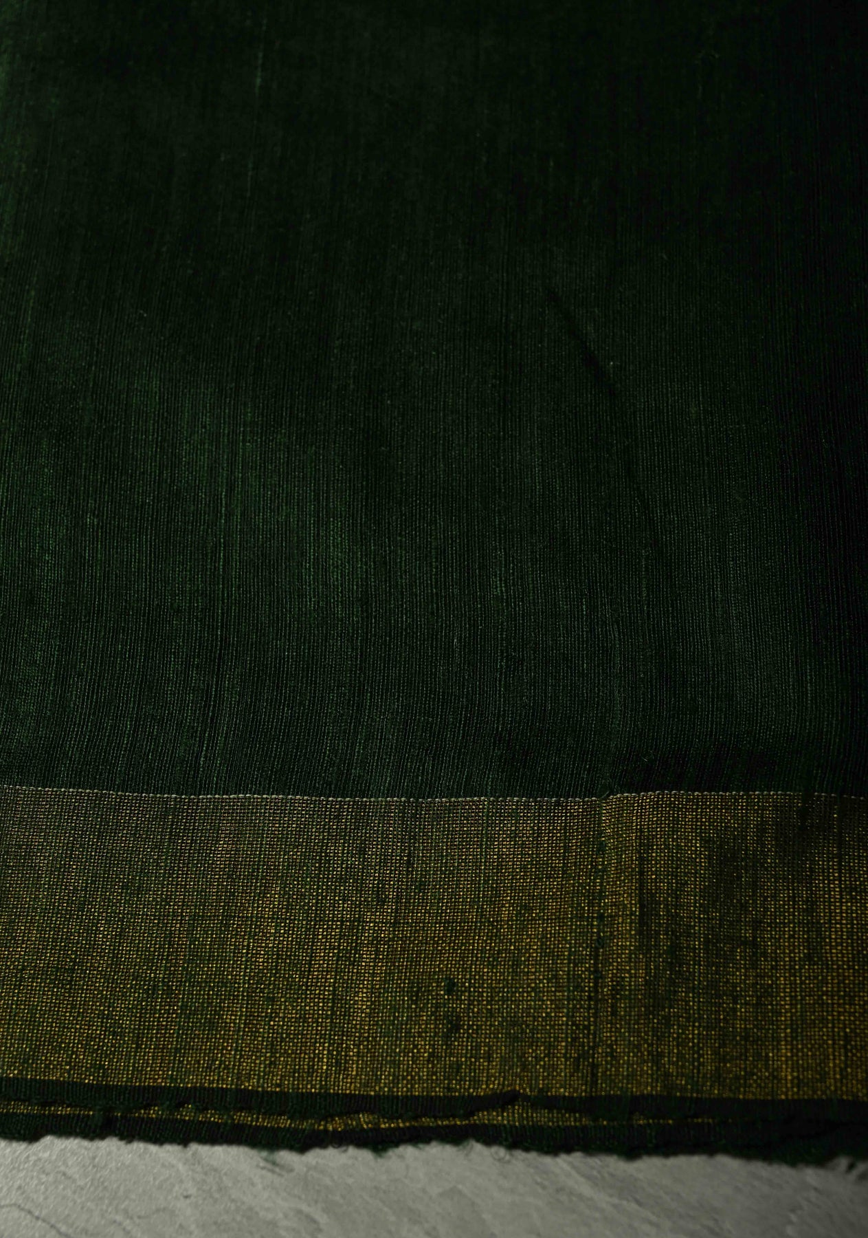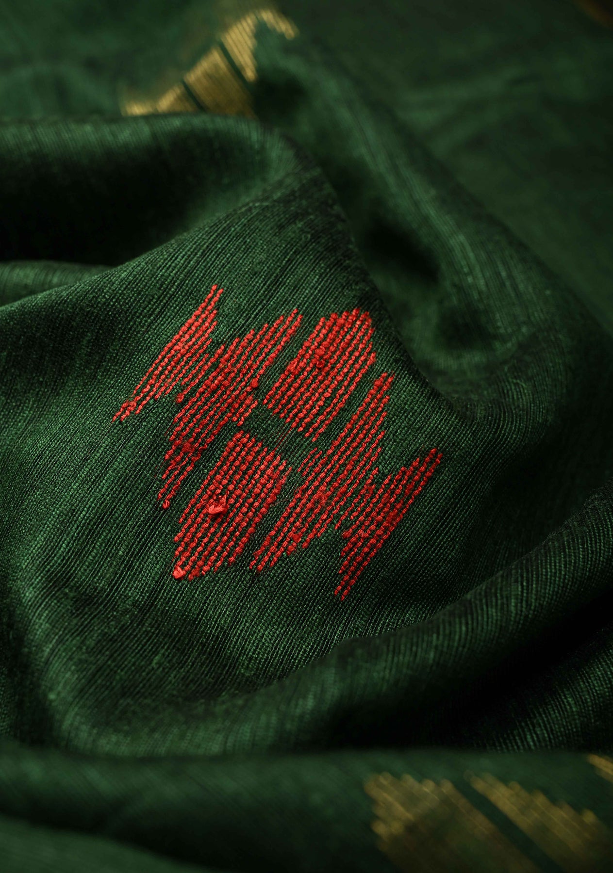 Green Gold Handloom Matka Silk Jamdani Saree with blouse Piece