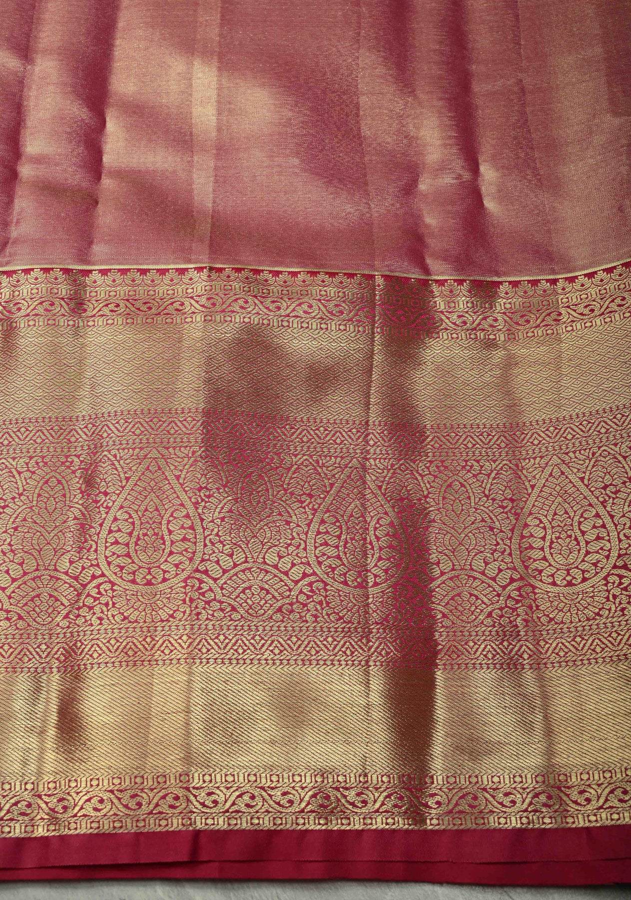 Make a dazzling entrance in this spectacular Vibrant Green Kanjivaram Tissue Semi Silk Saree. The glorious green hue, reminiscent of lush emeralds, is enhanced by the luminous shimmer of the tissue semi-silk fabric, giving the drape an ethereal glow. The body is a masterpiece, featuring an all-over Meenakari Floral Brocade Jaal where intricate blossoms are woven with colorful silk threads and fine zari. This detailed work adds rich texture and dimension. Completing this regal ensemble is a bold, Contrast Wide Zari Border, providing the classic, heavy frame characteristic of a true Kanchipuram weave. This saree is perfectly suited for grand wedding functions, deepavali celebrations, and momentous festive occasions.