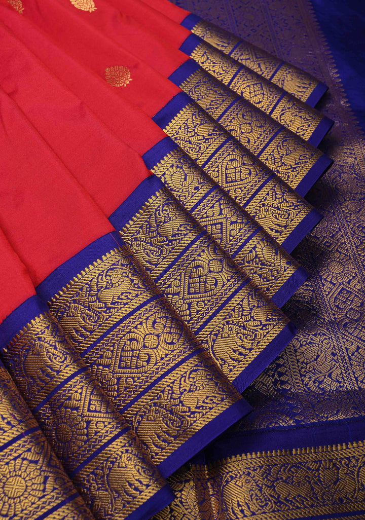 Embrace tradition with this exquisite 9-yard Madisar saree in a vibrant Rani Pink dual-tone. Crafted with meticulous care, it features elegant zari buttas intricately woven across the fabric, adding a touch of sparkle and sophistication. The rich zari border enhances the saree’s grandeur, making it perfect for cultural ceremonies and festive celebrations. This classic Madisar saree beautifully blends heritage with vibrant color, offering a timeless piece for your ethnic wardrobe.