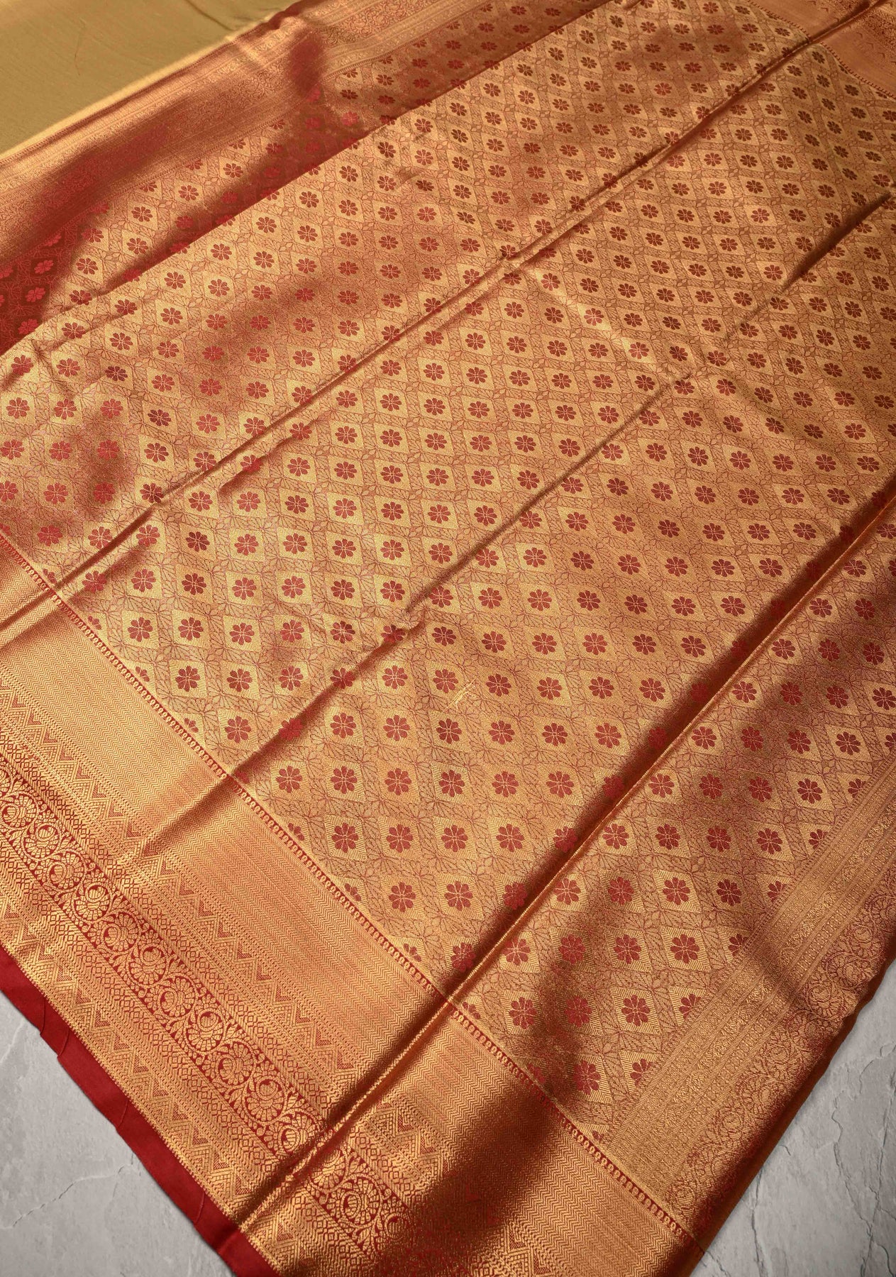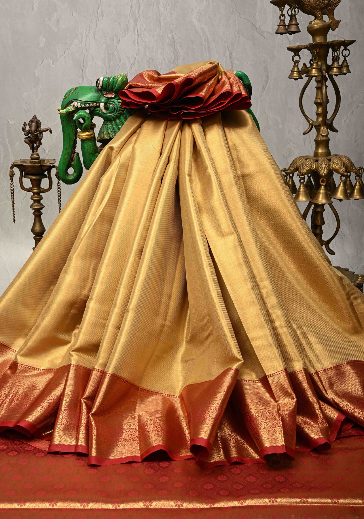 Gold Kanchi Tissue Semi Silk Saree with Contrast Zari Border