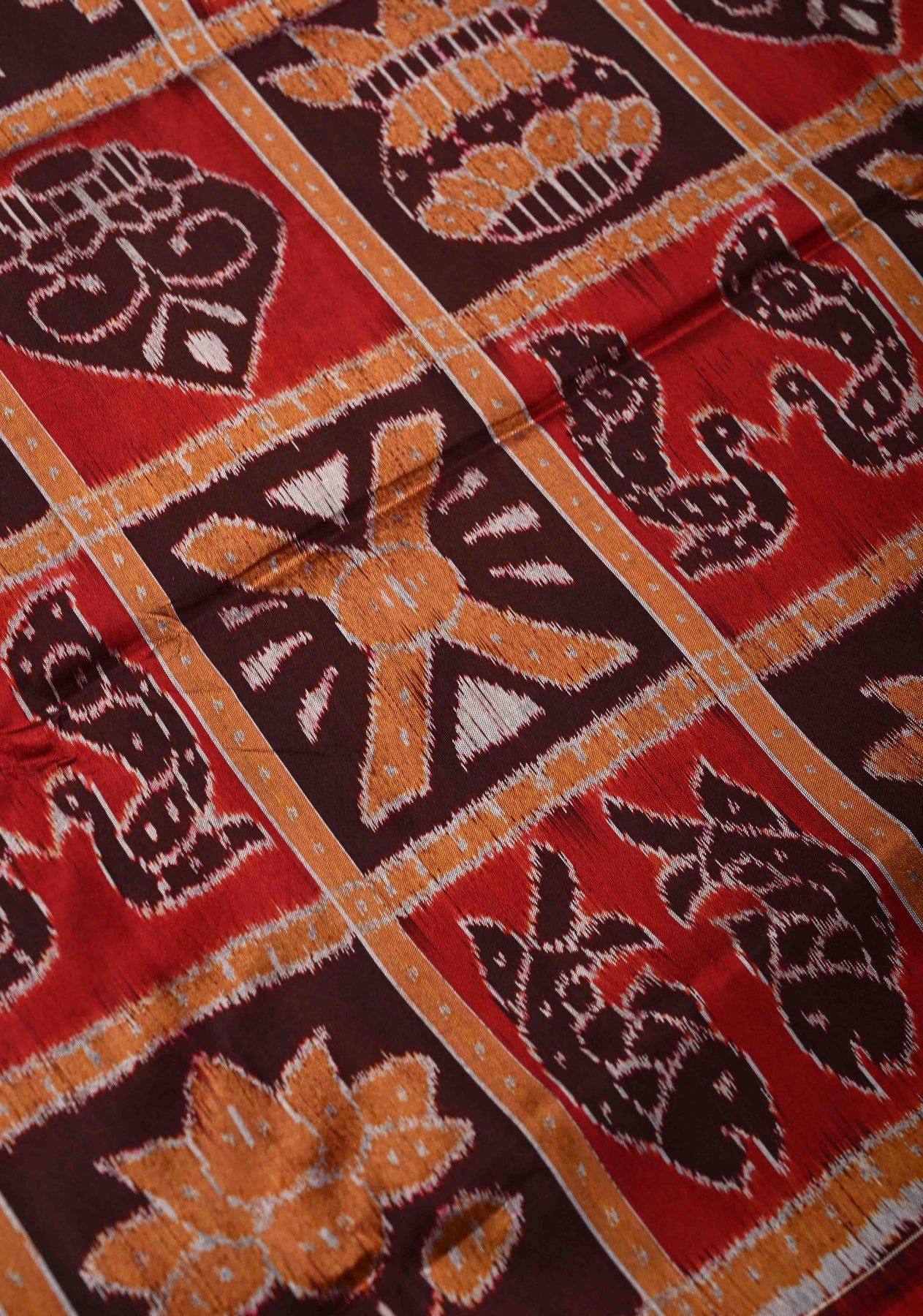 Inspired by timeless elegance, the Madhuri Dixit Sambalpuri Ikkat Handloom Saree in Red and Brown is a tribute to traditional Indian craftsmanship and iconic style. Handwoven by skilled artisans from Odisha, this pure silk saree showcases the signature Sambalpuri Ikkat weave with intricate geometric and floral patterns. The vibrant red body contrasts beautifully with the rich brown pallu and border, creating a bold yet graceful look. Worn by Madhuri Dixit herself, this saree blends heritage with celebrity charm — perfect for festive occasions, cultural events, or making a grand statement.