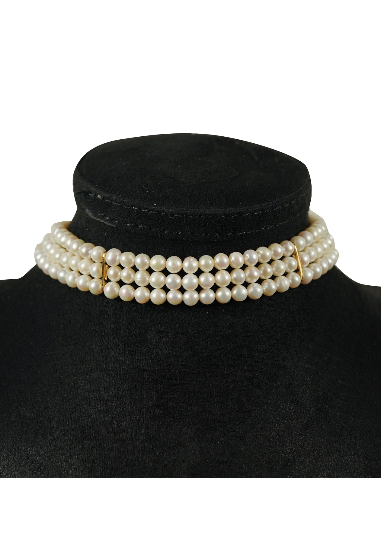 Dreamy Radiance: White Three Strand Pure Pearl Choker and Stud Earrings Set