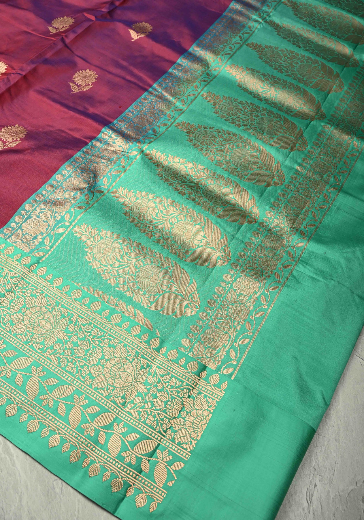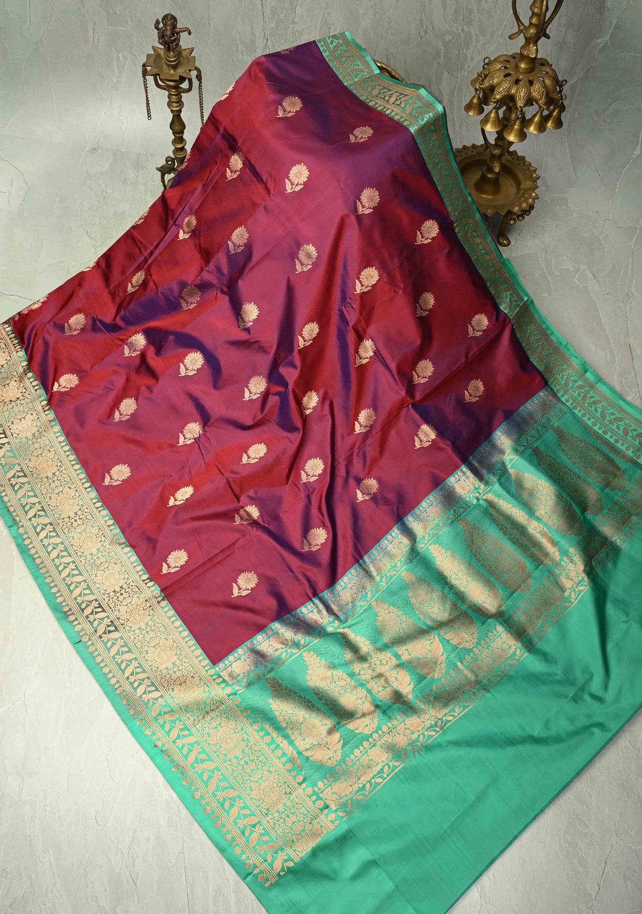 Purple Dual tone Banarasi Katan Silk Saree with Floral Zari Buttas and Contrast Zari Border | SILK MARK CERTIFIED
