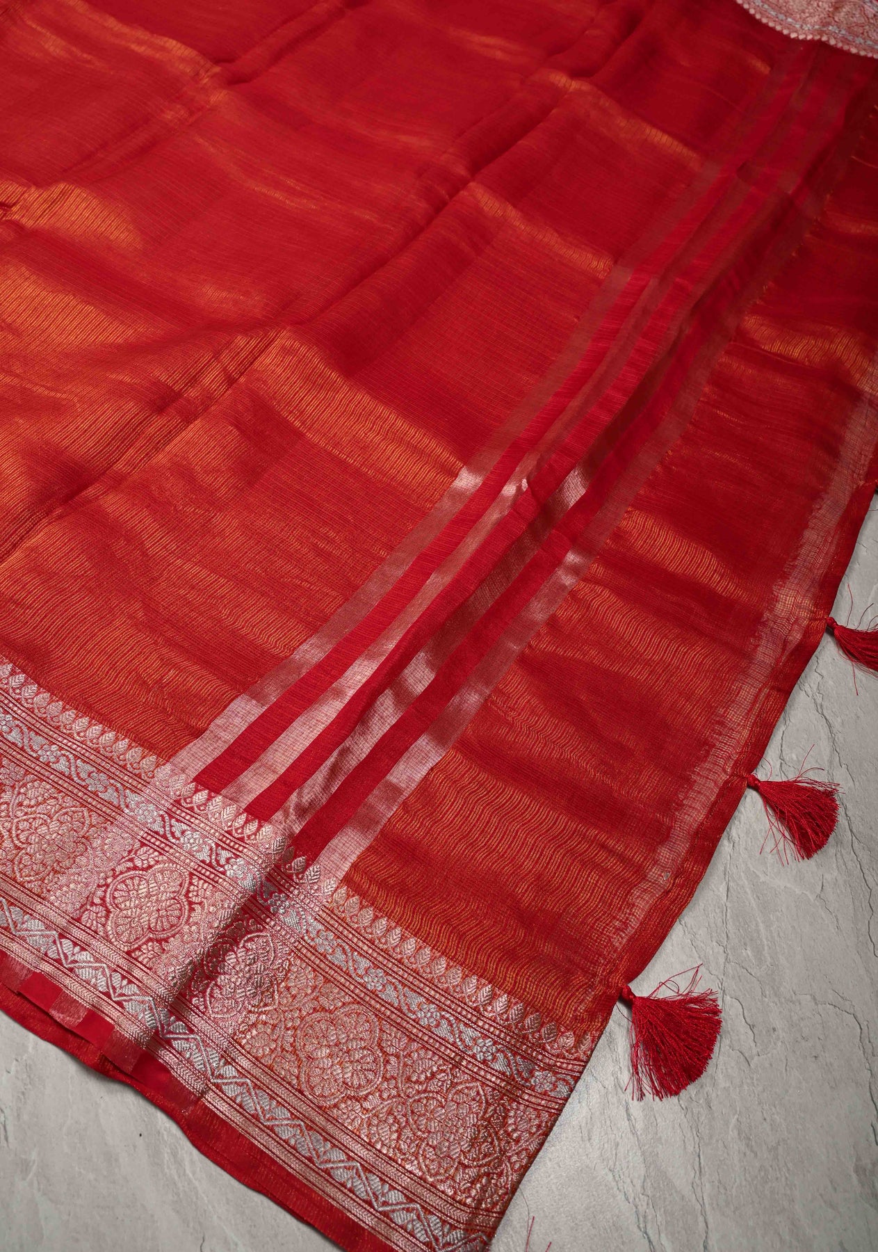 Red Kota Doria Tissue Cotton Saree with Sona Rupa Zari Border