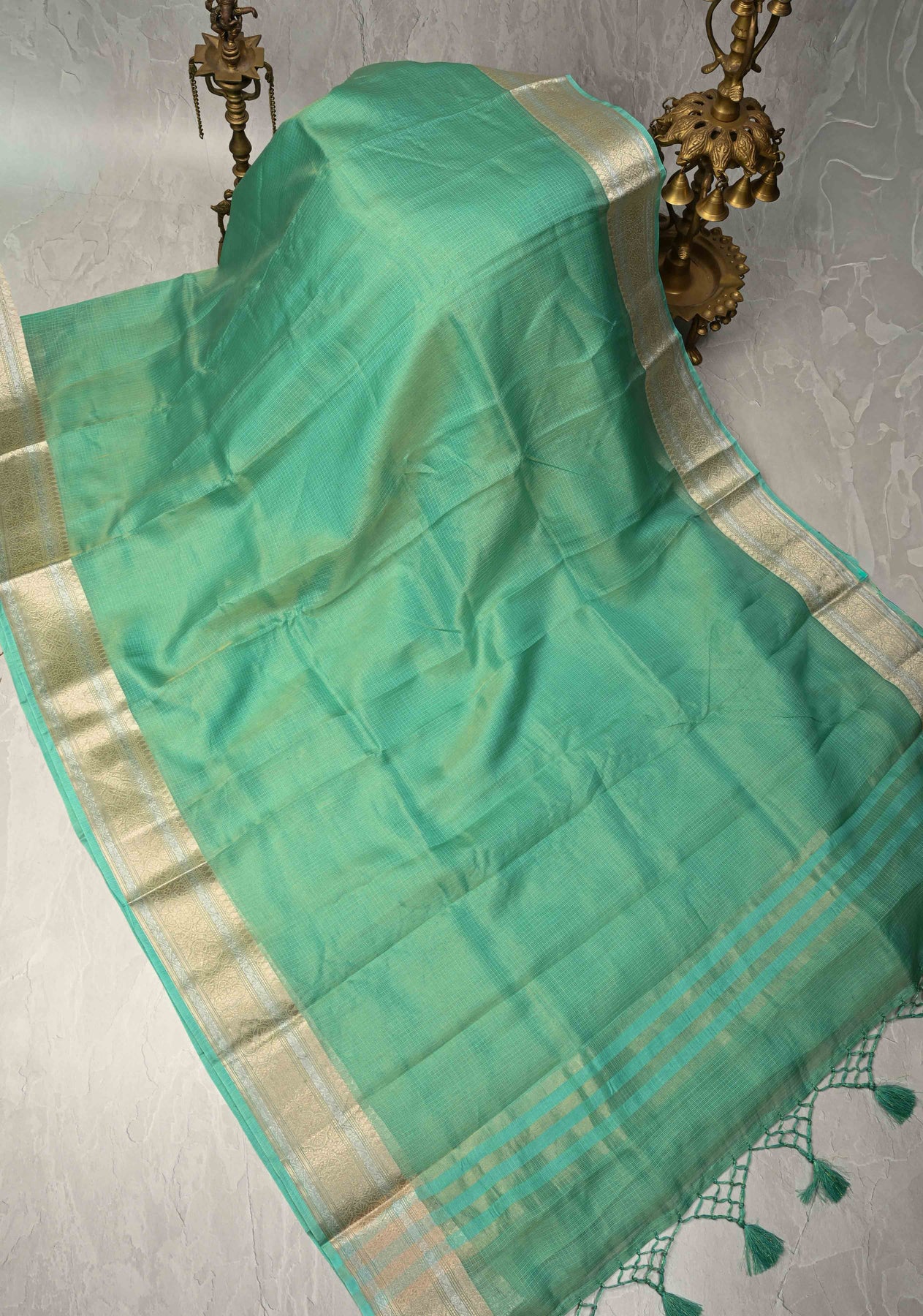 Sea Green Kota Doria Tissue Cotton Saree with Sona Rupa Zari Border