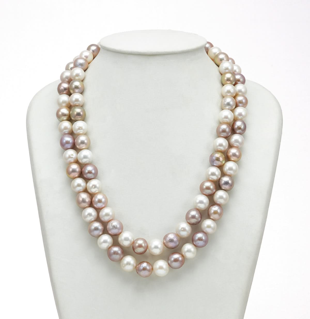 2 Strand Freshwater Favorite Gray and White Pearl Necklace Set