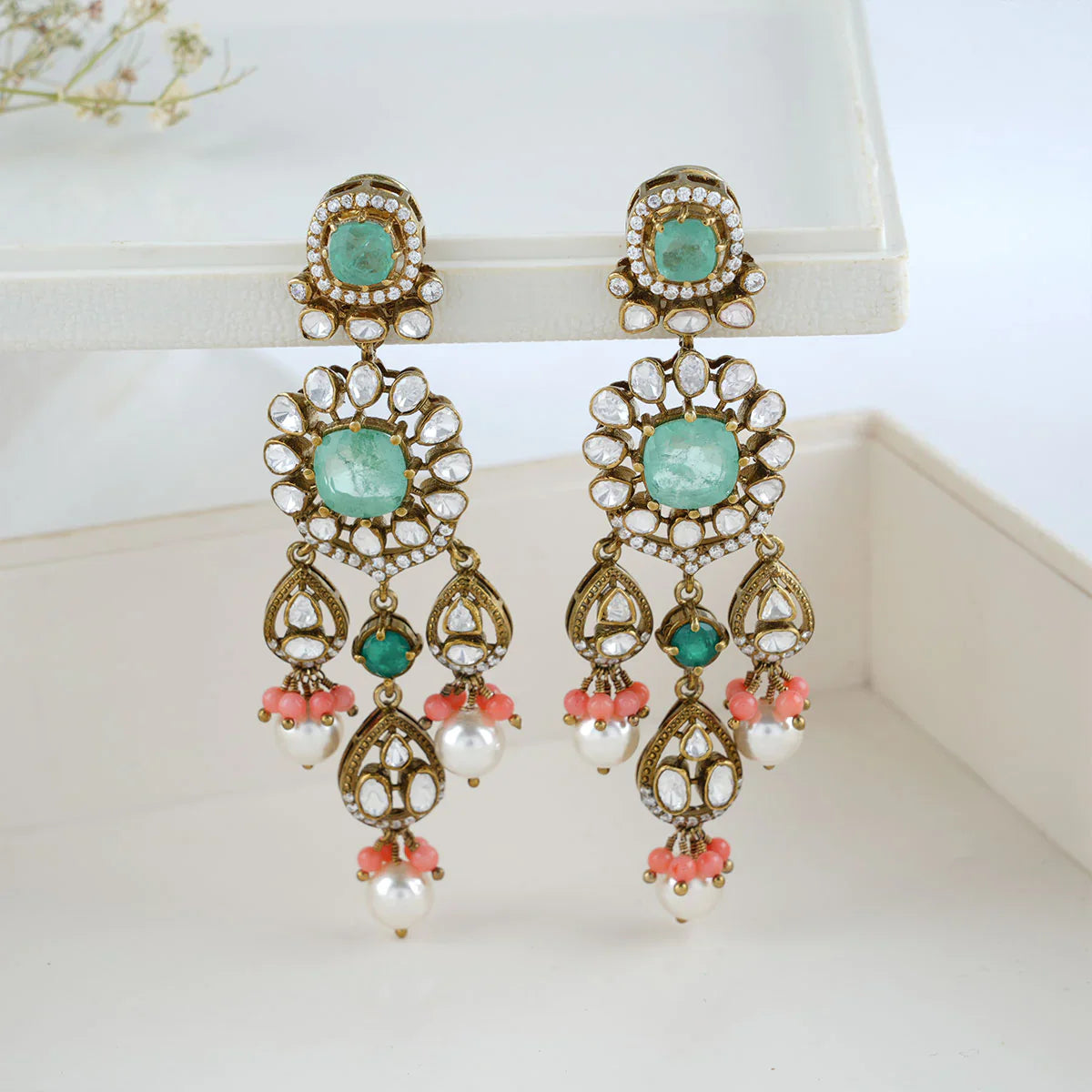 This set is a stunner. It comes in a timeless victorian design and is encrusted with the most stunning color stones, and settings for a luxurious and charming appeal!