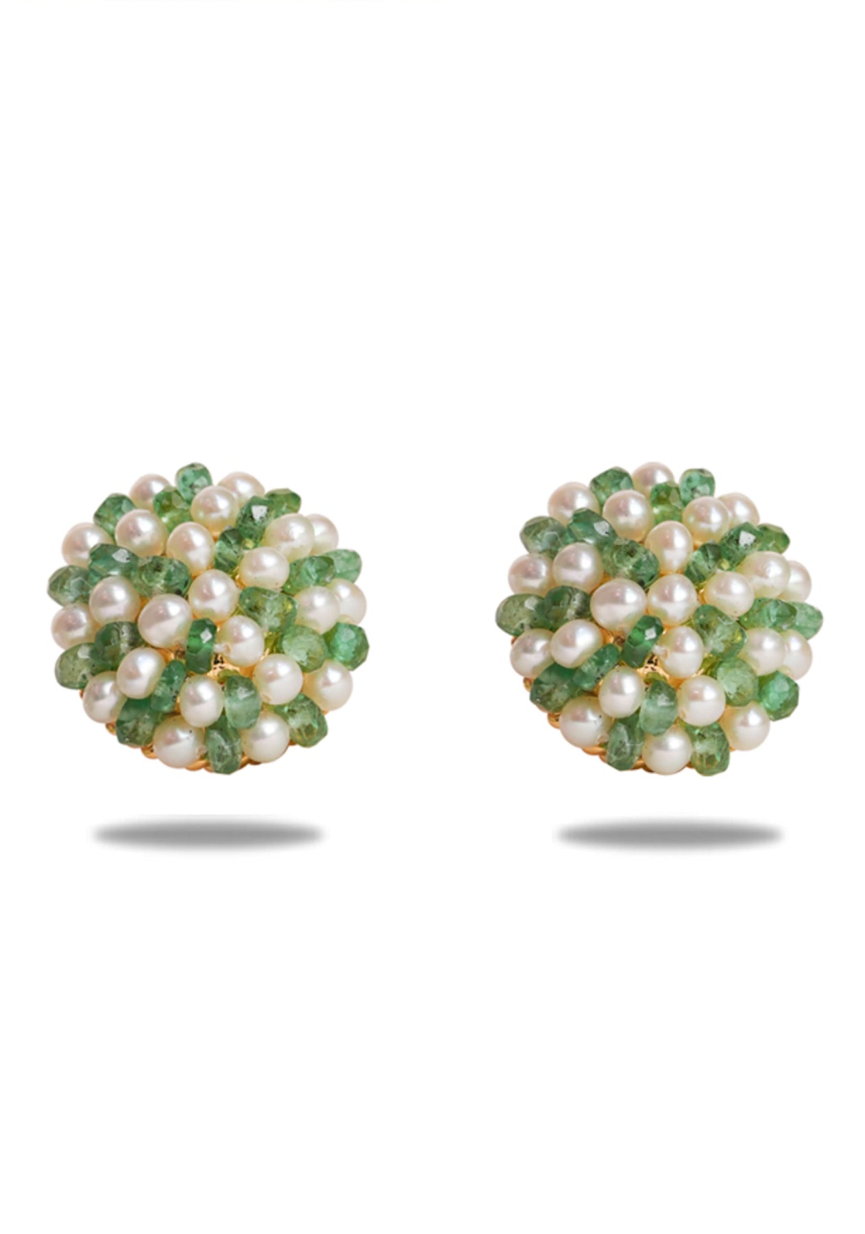 Cluster Earings Emerald Green and White Pearl Stud Earrings