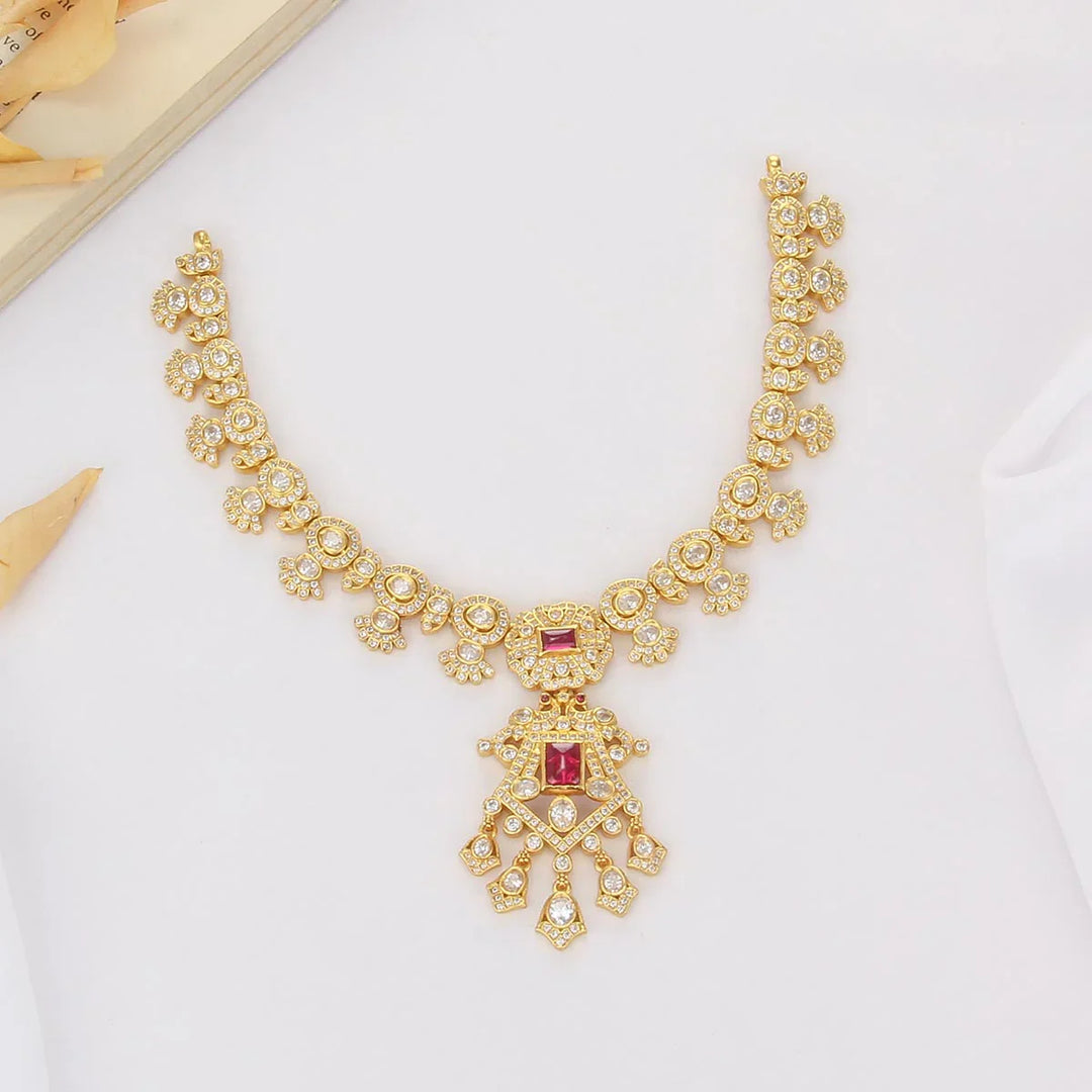 92.5 Silver, 24kt Gold Plated Ashritha Stone Short Necklace