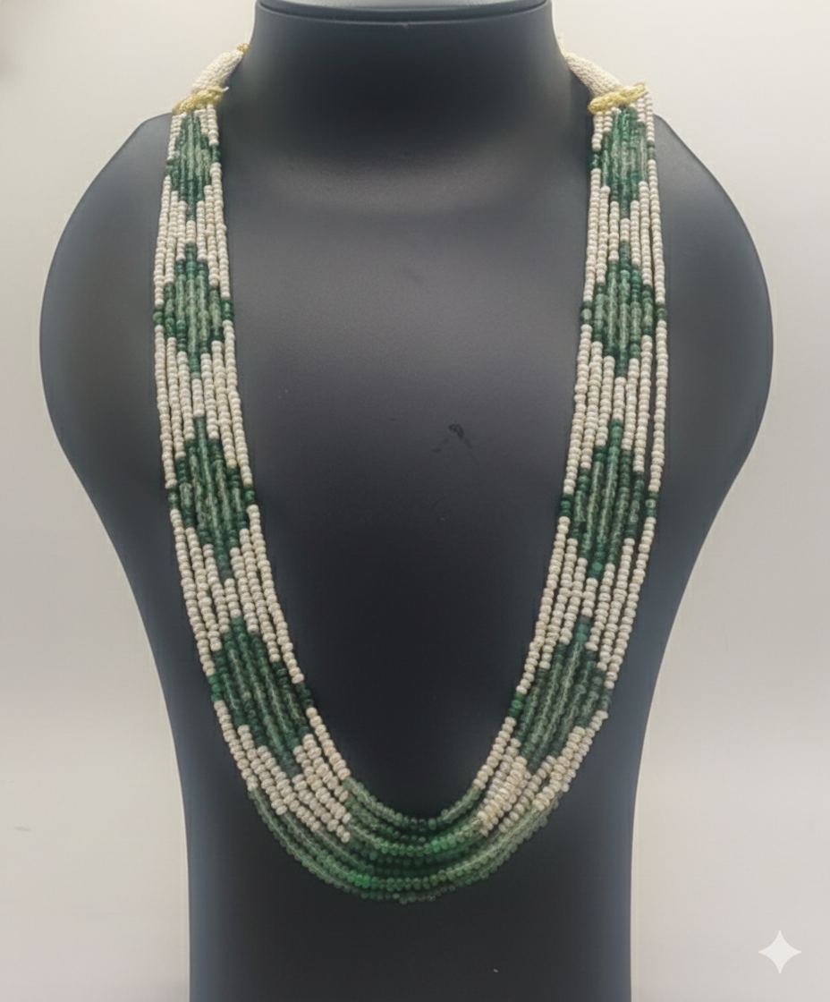 Regal Emerald & Pearl 3-Strand Necklace