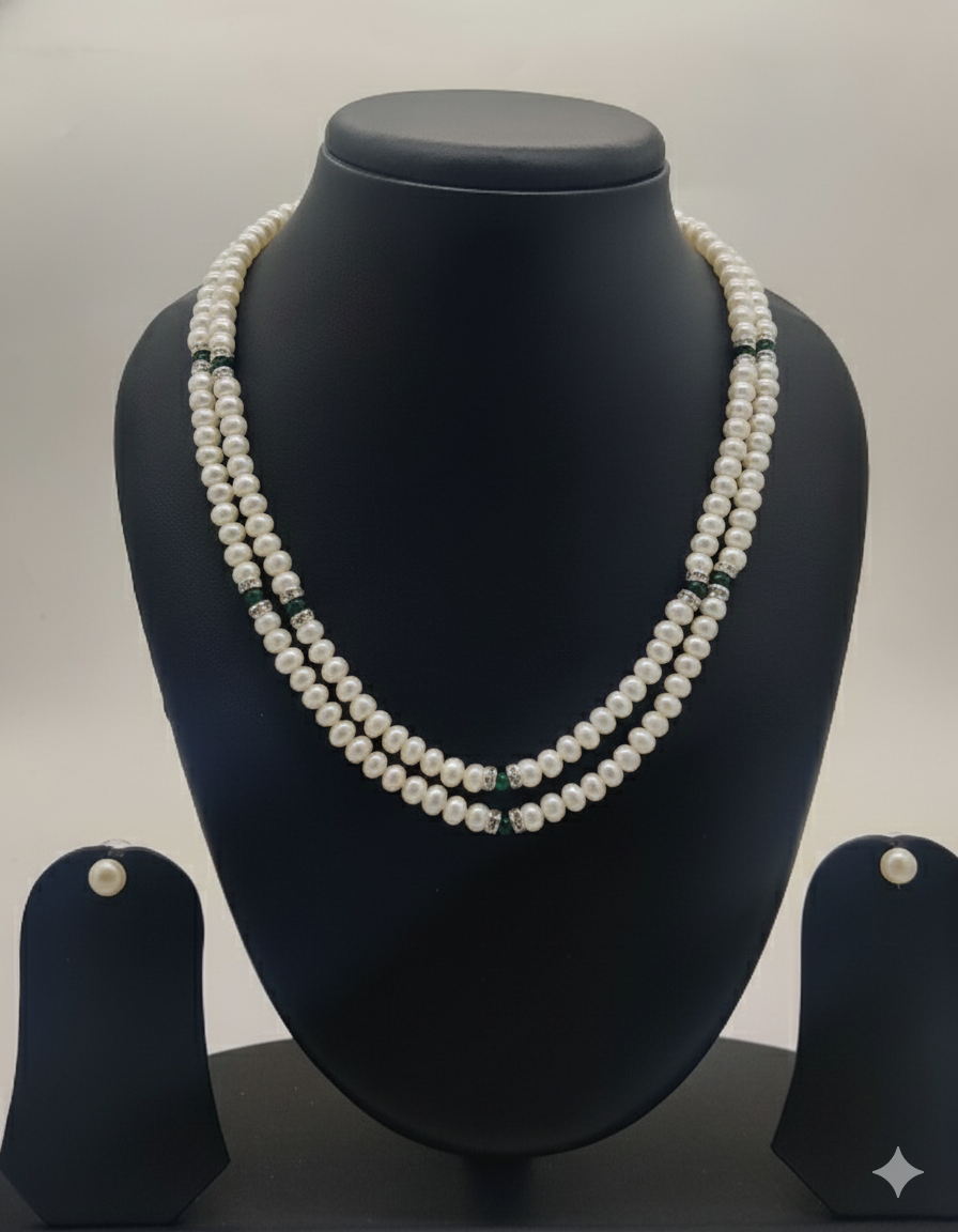Emerald Grace Double-Strand Pearls Necklace Set