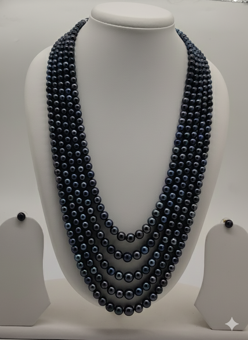 Nightfall Layers Pearls Necklace and stud set