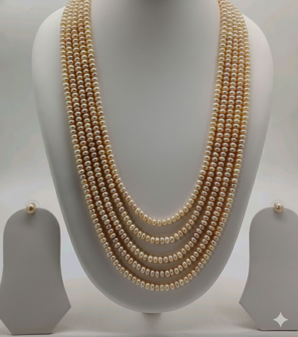 Fresh Water Natural Golden Multi- Strands Seed Pearl Set