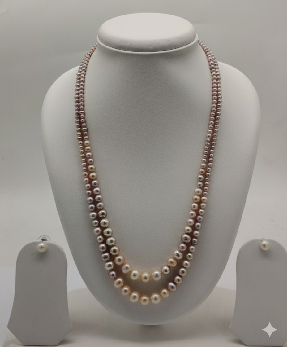 Sunset Blush Duo Pearls Necklace Set