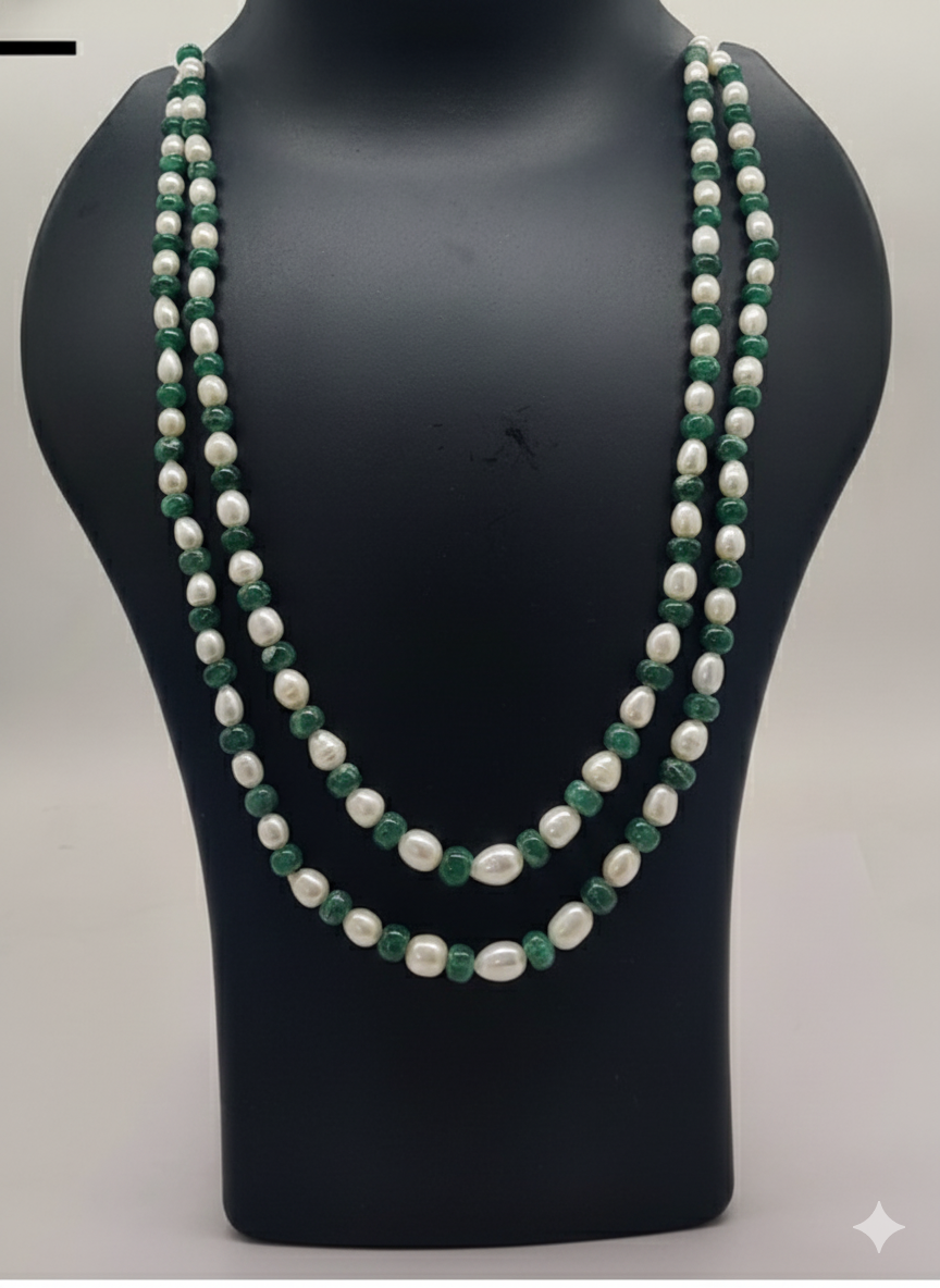 Classic Green & Pearl Double-Strand Necklace