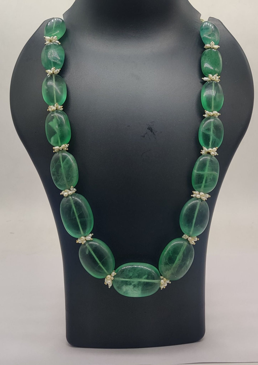 Dewdrop Green Fluorite Oval Beads Necklace