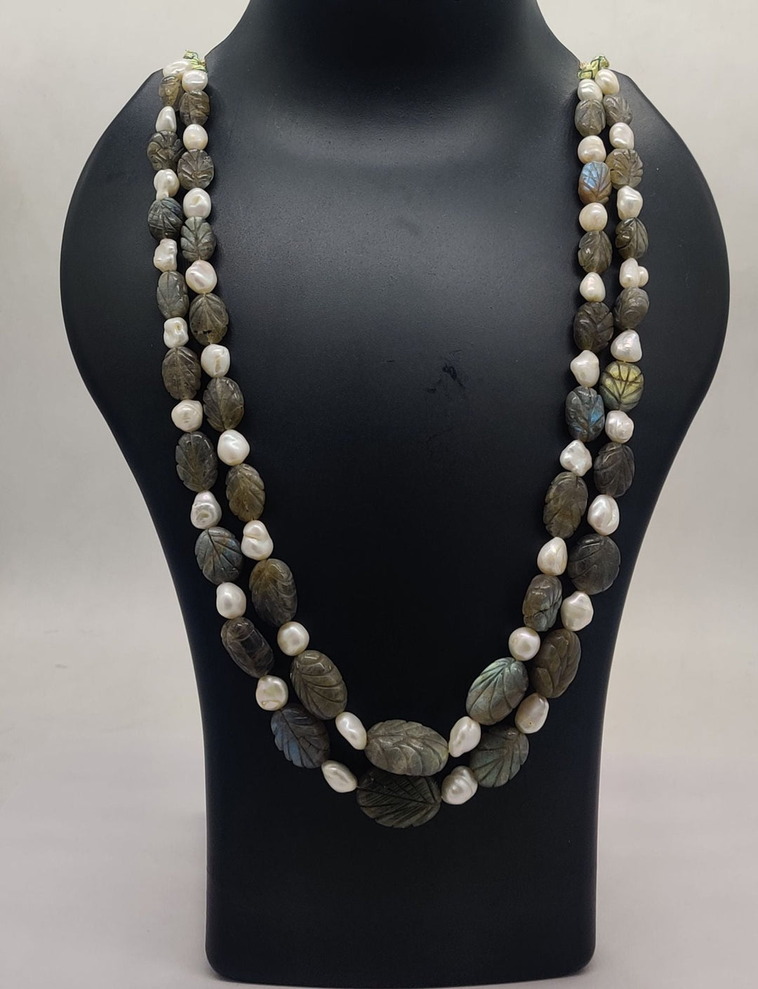 Labradorite Leaves & Baroque Real Pearl Necklace