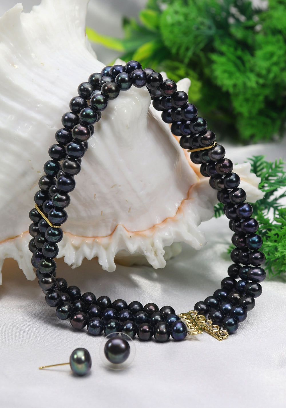 Freshwater Iridescent Deep Blue Pearl Necklace Set