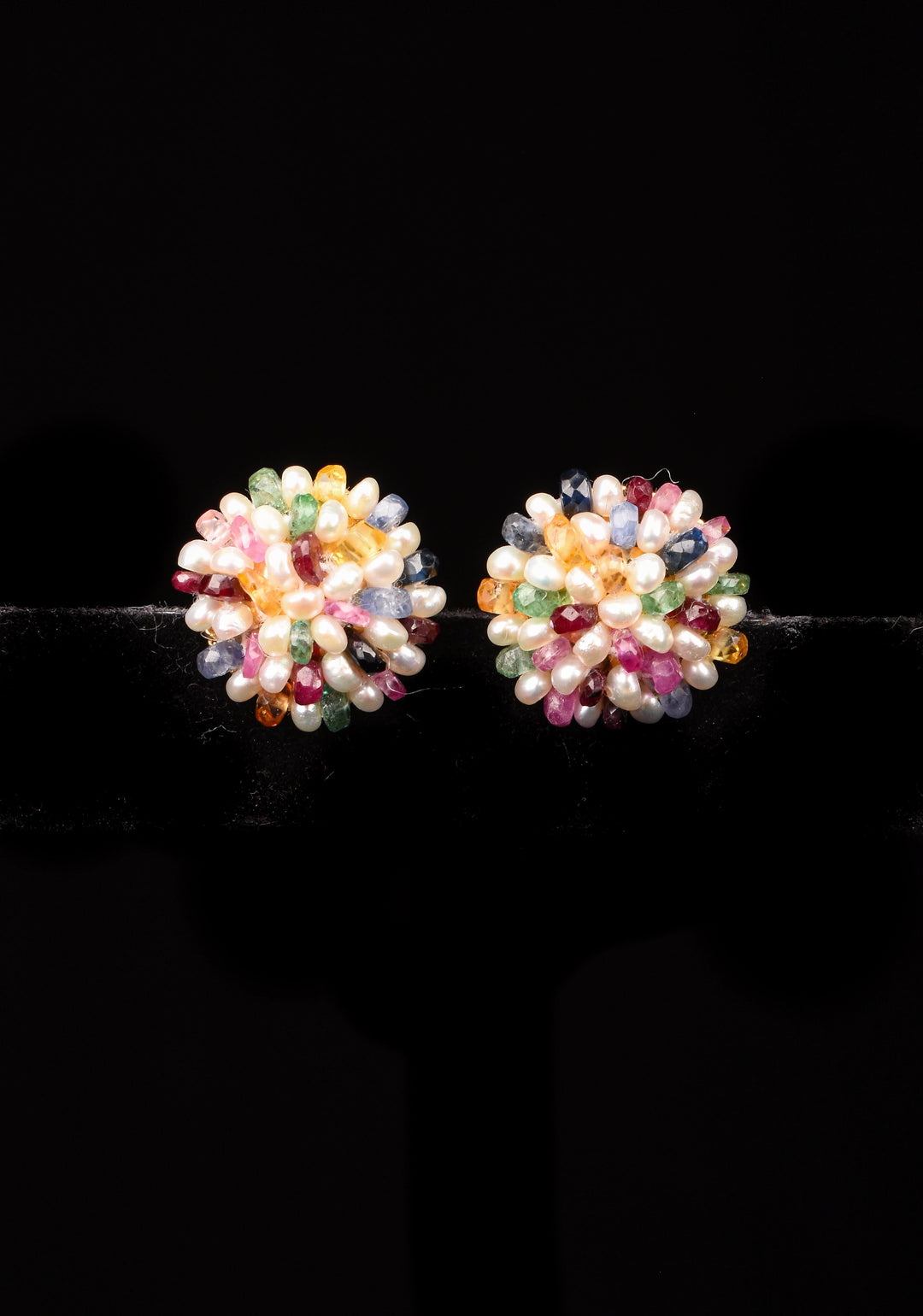 Real Seed Pearls and Gemstones Multicolor Hue Pearl Studs