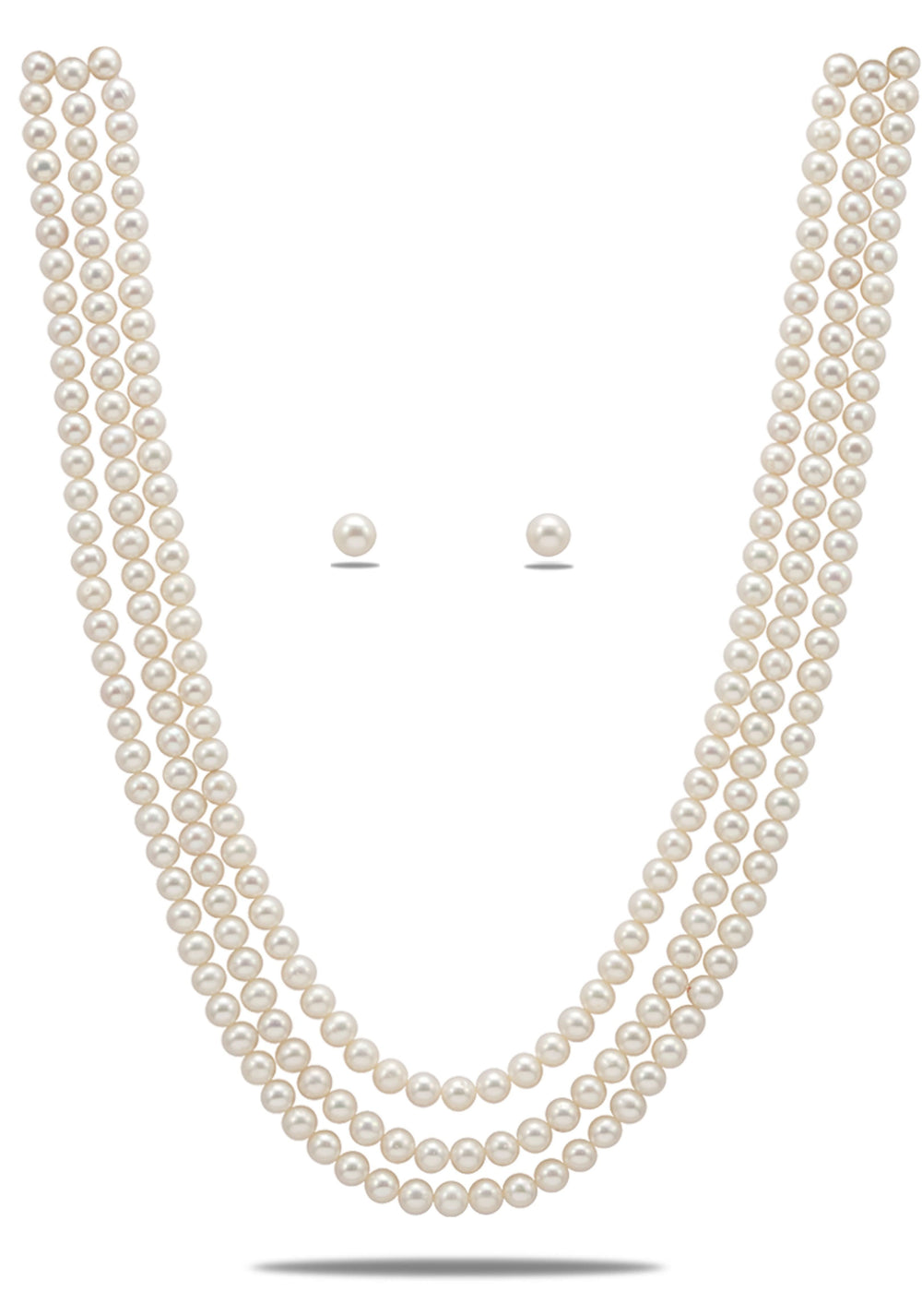 18" Royal 3 Strand Iridescent Pearls Necklace Set, AAA grade