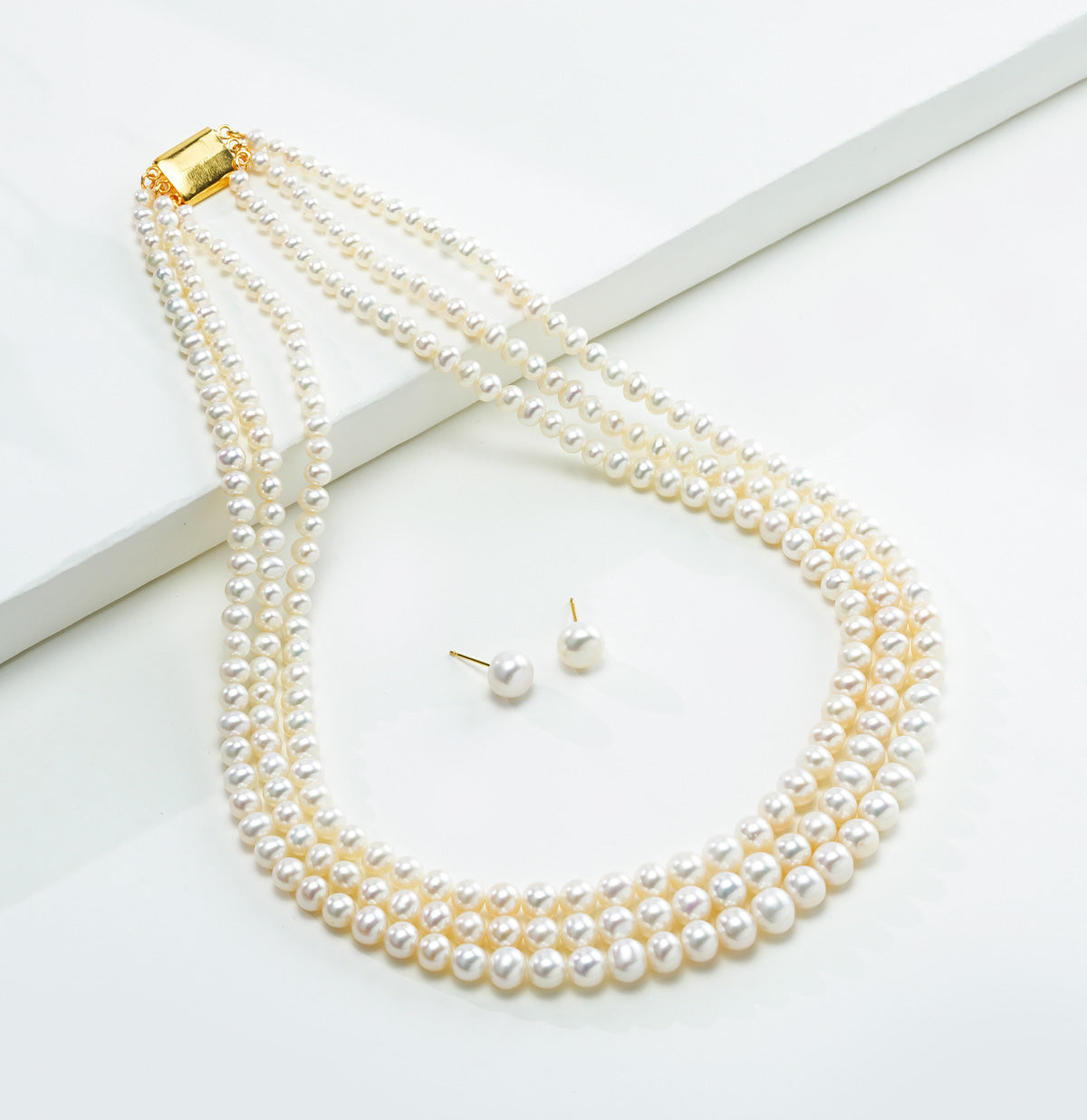 Note: The pearls used in this set are real. As with all natural materials, there may be slight inconsistencies such as in its shape and color. These are characteristic and attest to their authenticity and are not considered as defects,