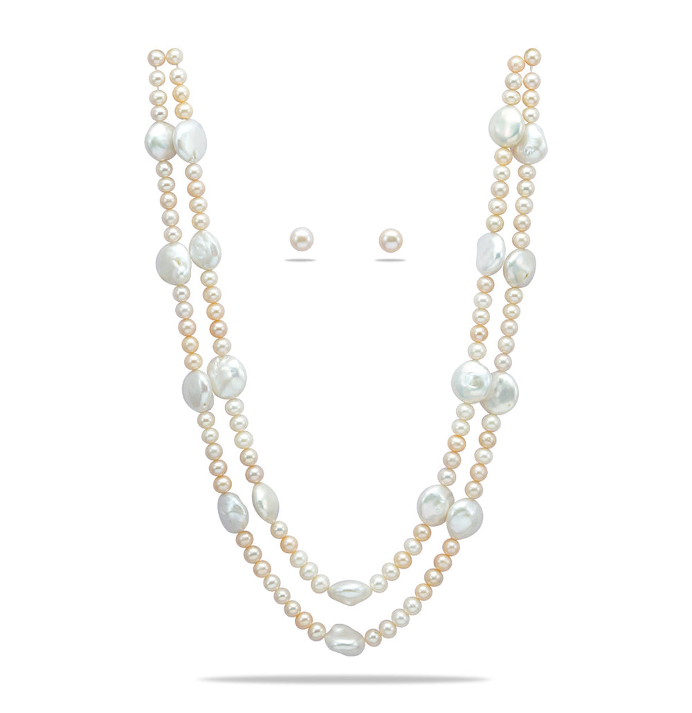 Freshwater 2 Strand Stylish Multicolor Pearl Necklae Set