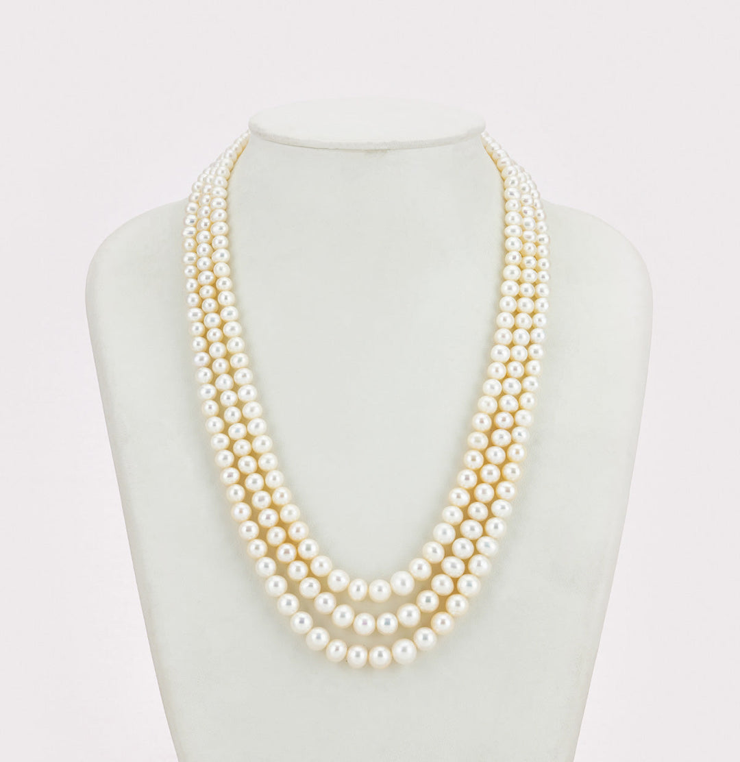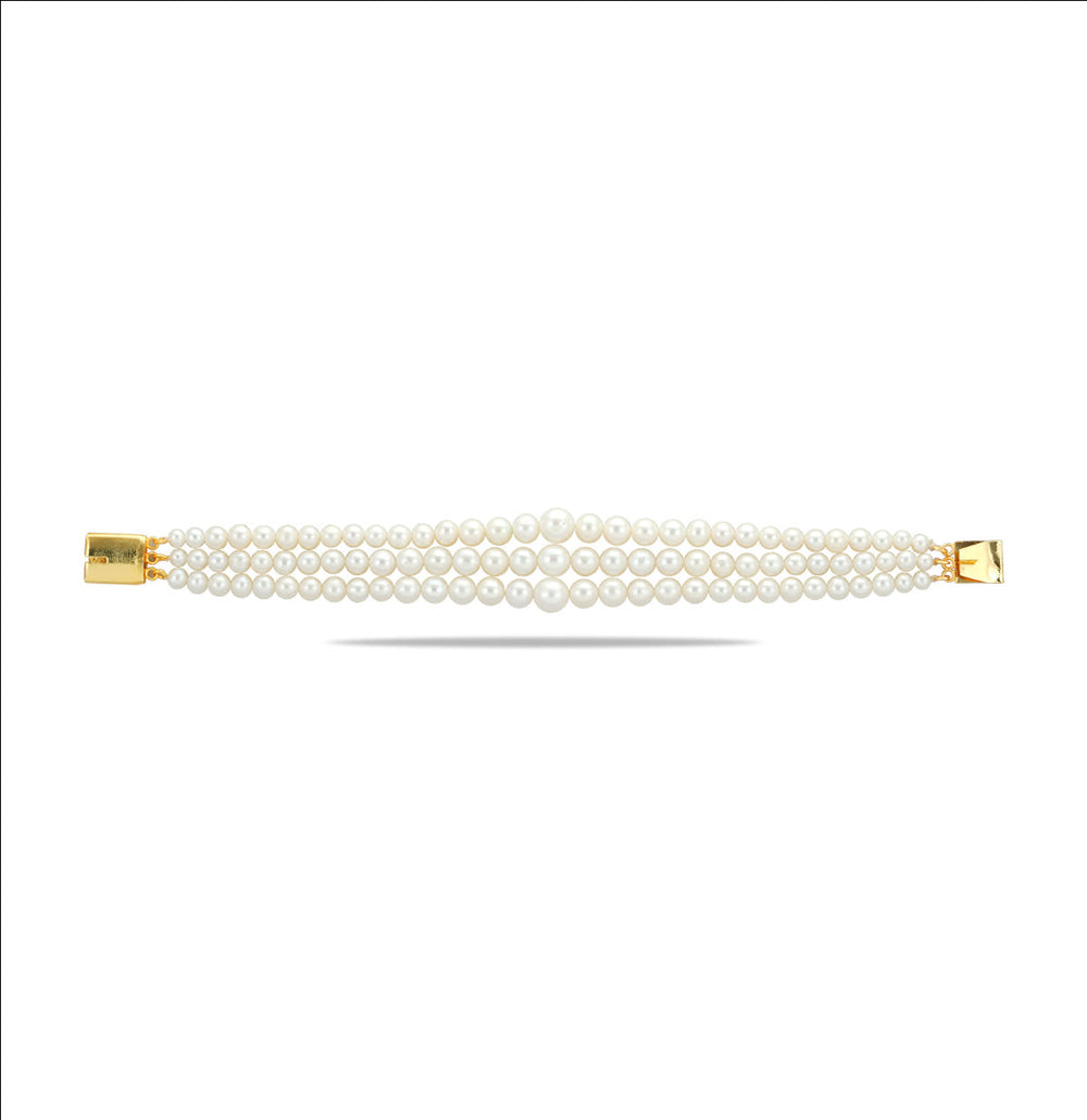 White 3 Strand Versatile Round Grading Pearl Bracelet