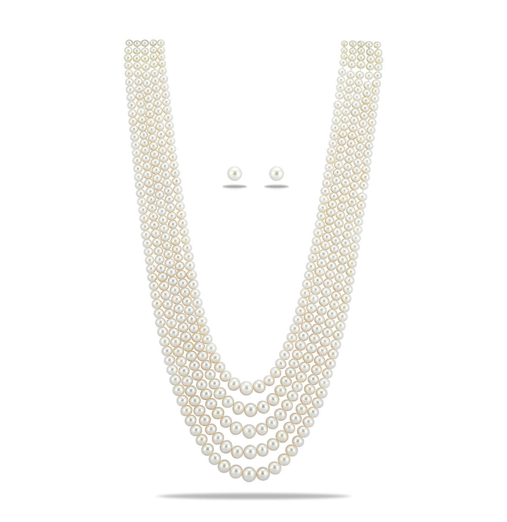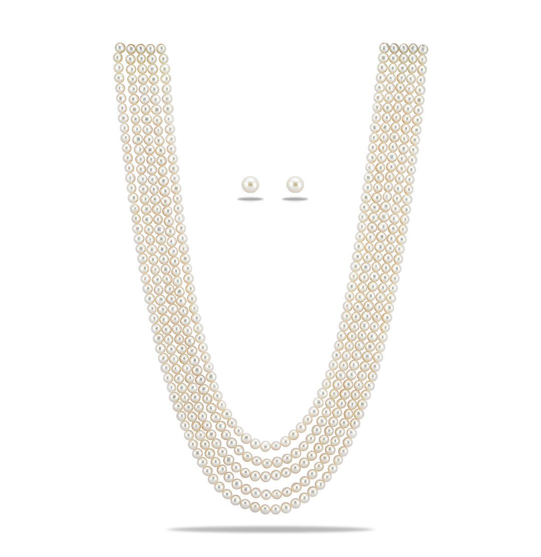 White 5 Strand Translucent Fancy Pearl Necklace Set