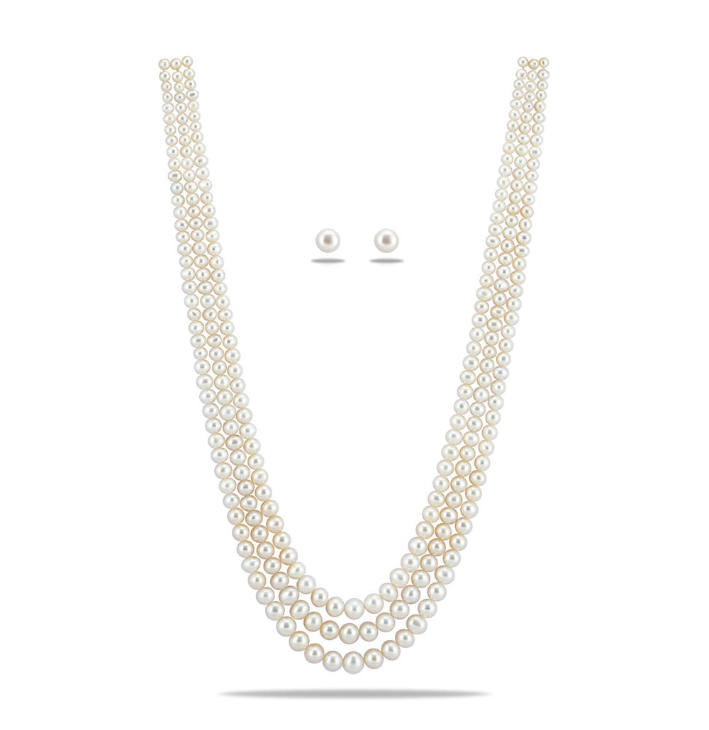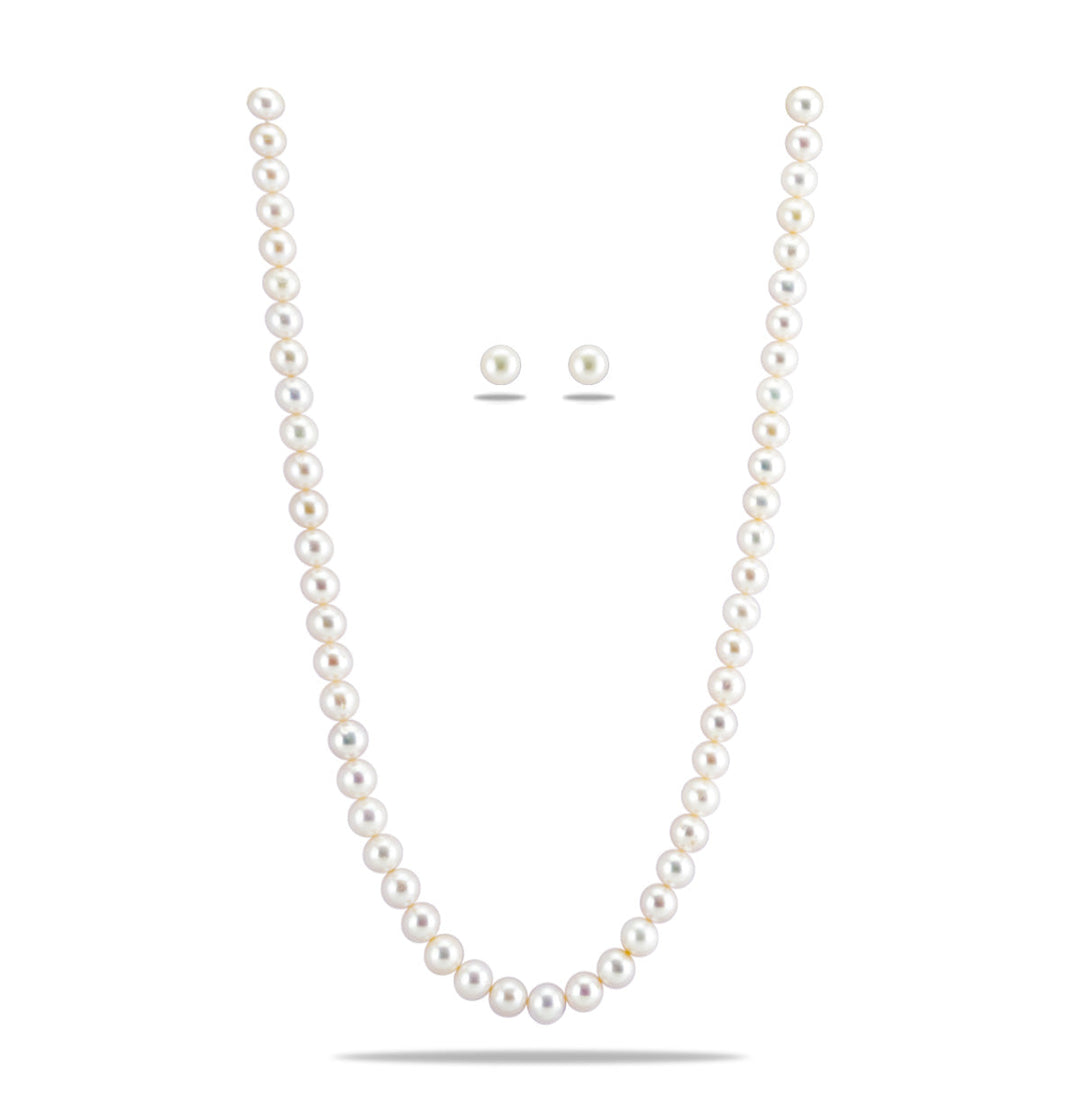 Single Strand White Round Pearl Necklace Set