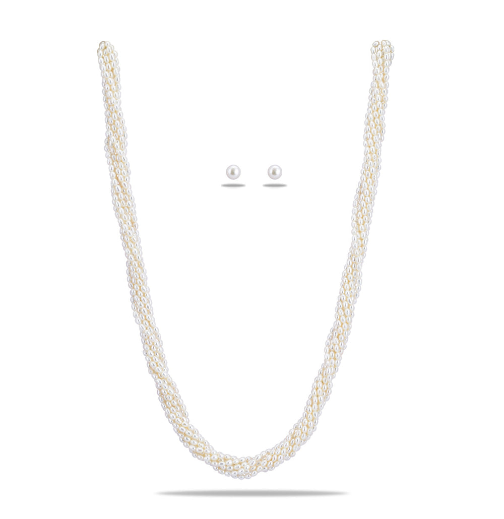 Twisted White Rice Pearl Necklace Set