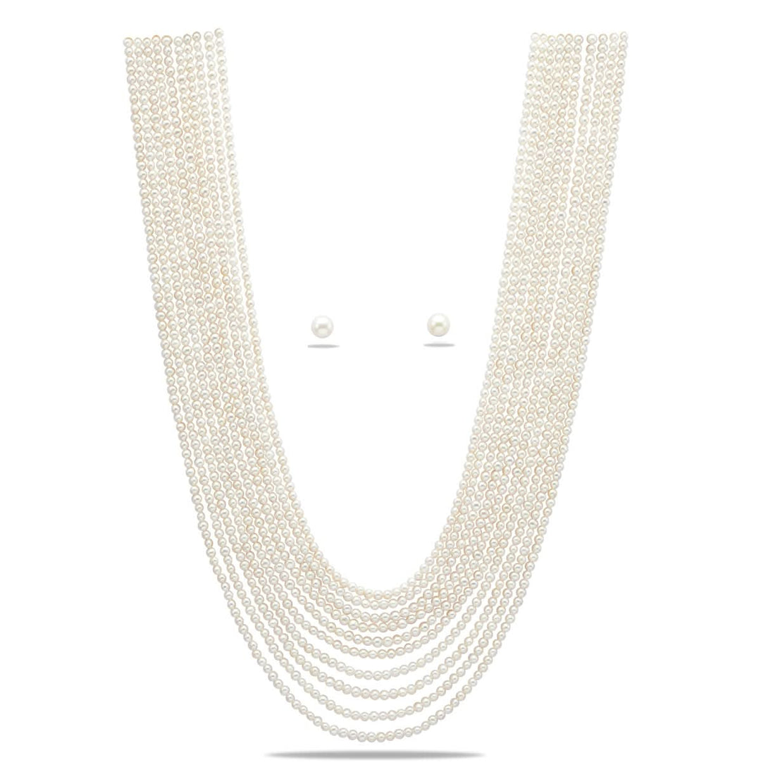 Two Strand Freshwater Glittering Gray and White Pearl Necklace Set
