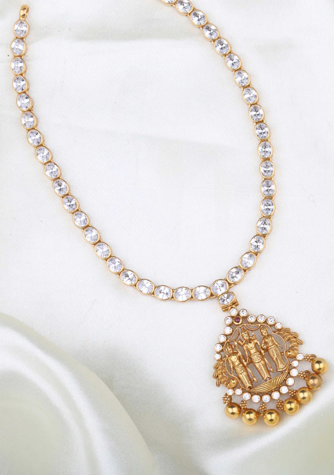 92.5 Silver 24 Kt Gold Plated Stone Studded Necklace