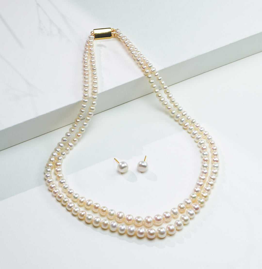 2 Strand Freshwater Favorite Gray and White Pearl Necklace Set