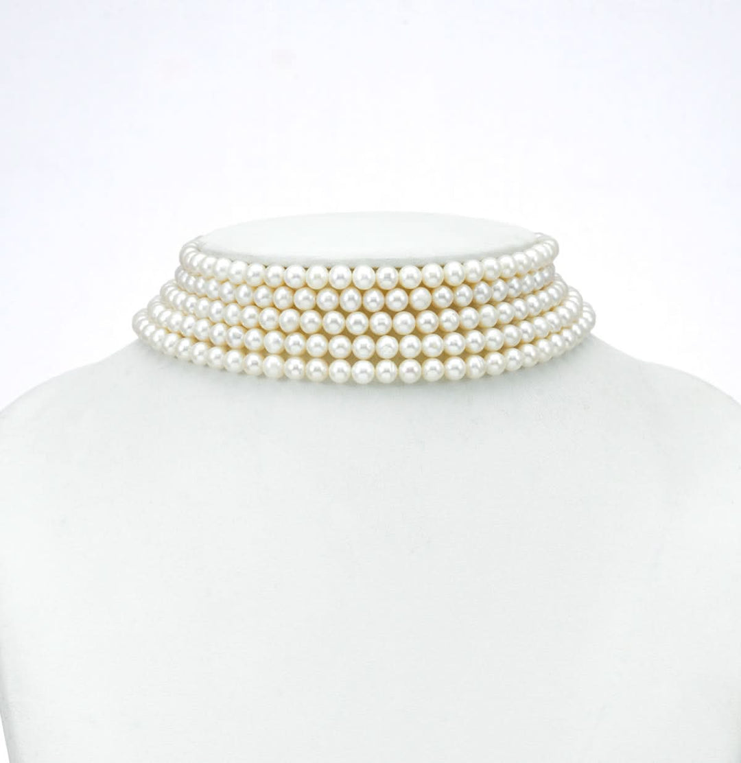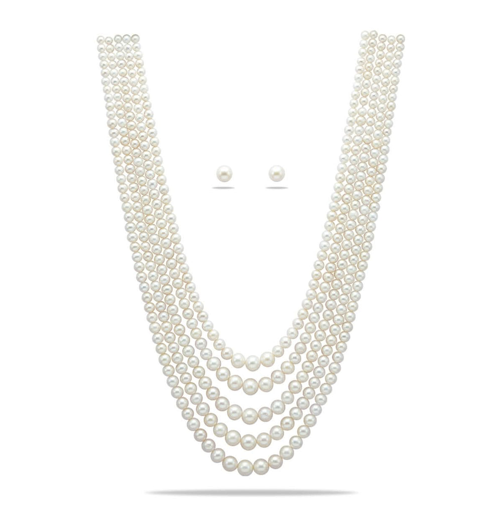 Five Strand Freshwater White Round Grading Pearl Necklace Set