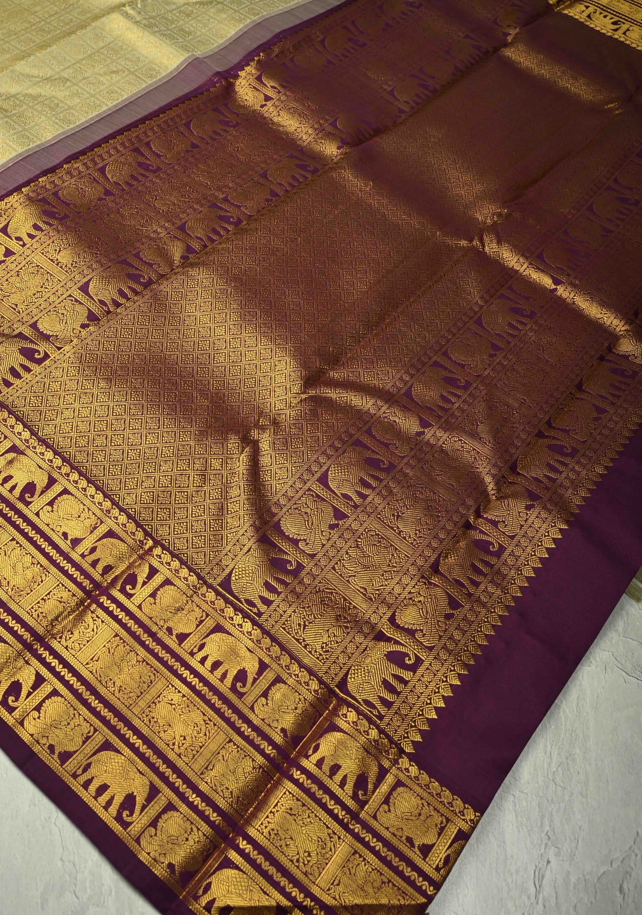 A striking Zari border and pallu, woven in pure gold and silver threads, adds a touch of grandeur, making this saree perfect for weddings, festive occasions, and celebrations. The soft silk drapes beautifully, offering both comfort and sophistication in every pleat