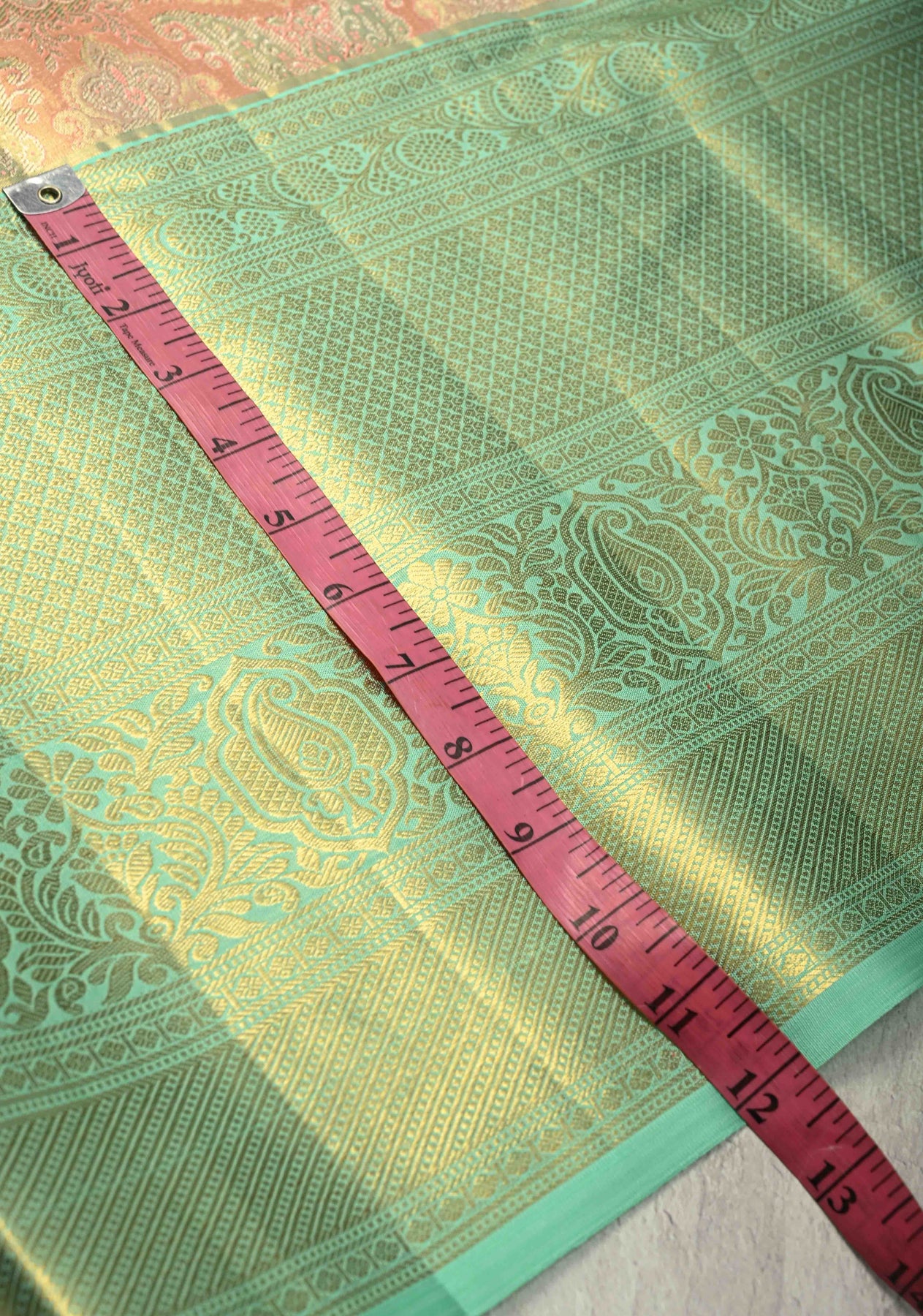 This peach pink pure Kanjivaram tissue silk saree is a perfect blend of delicate hues and traditional grandeur. Crafted from tissue silk, it showcases a stunning meenakari brocade that intricately weaves floral and geometric patterns, adding vibrancy and artistry to the saree. The contrast wide zari border enhances its opulent look, making the saree stand out with its regal appeal. Ideal for weddings, festive occasions, and special celebrations, this saree is a timeless piece that reflects classic South Indian craftsmanship.