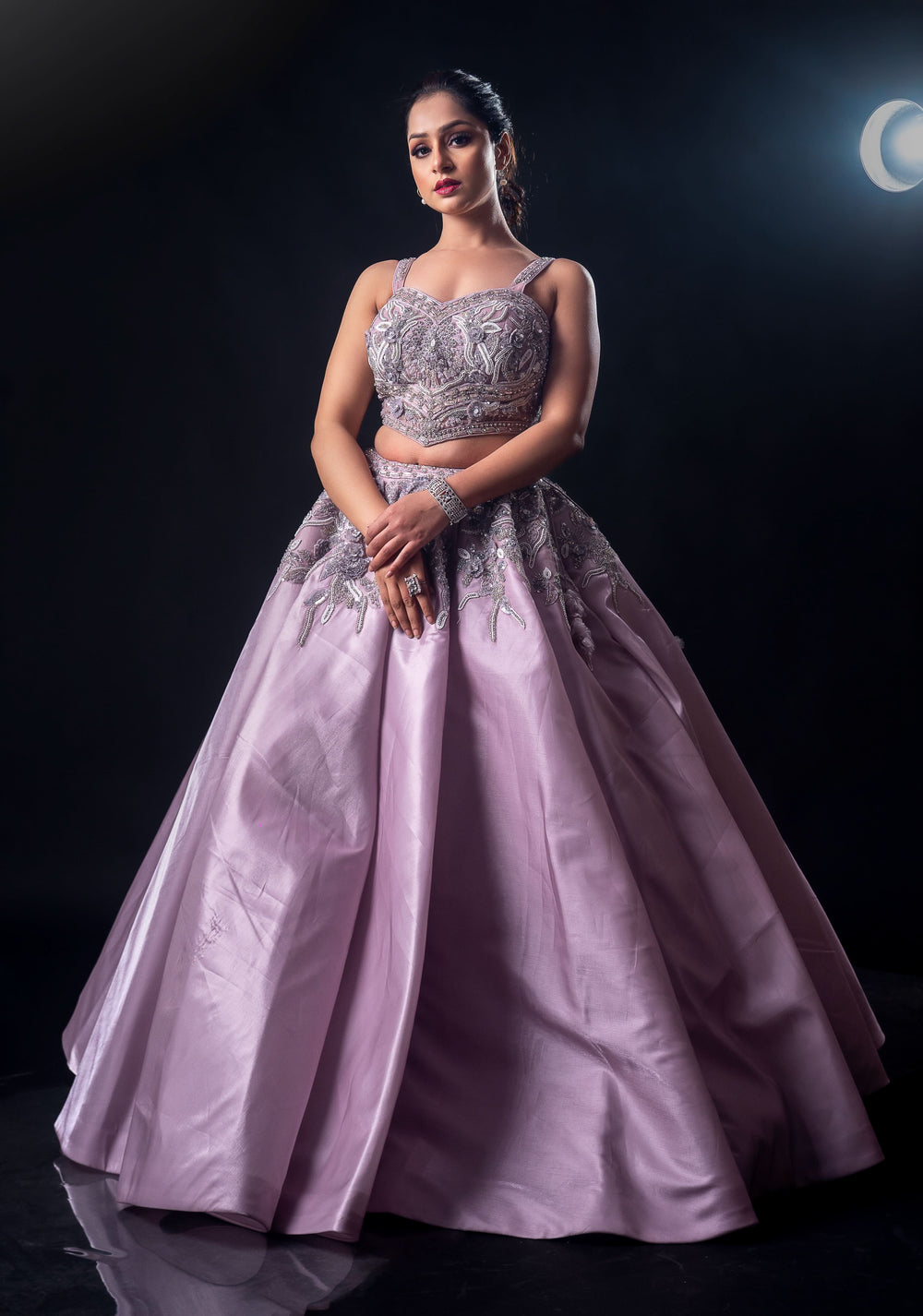 Indulge in romantic elegance with this pastel petals dream lehenga, reminiscent of delicate petals in the morning dew. Designed to evoke a princess-like allure, the embroidery on the blouse, sleeveless silhouette exude feminine grace. Luxurious embroidery delicately woven into the fabric adds a touch of regal charm. The form-fitting blouse together with voluminous lehenga skirt, cascades down to the hemline with ethereal grace. Whether it's a fairytale wedding or an enchanting gala, this ensemble is sure to captivate hearts with its timeless beauty.