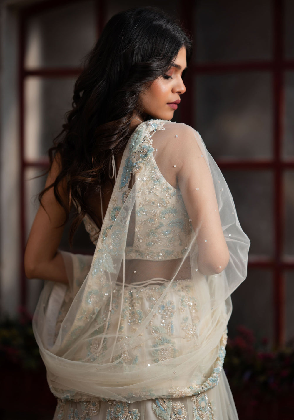 Pearls in Net Ethereal Handcrafted Lehenga in Ivory | Customizable