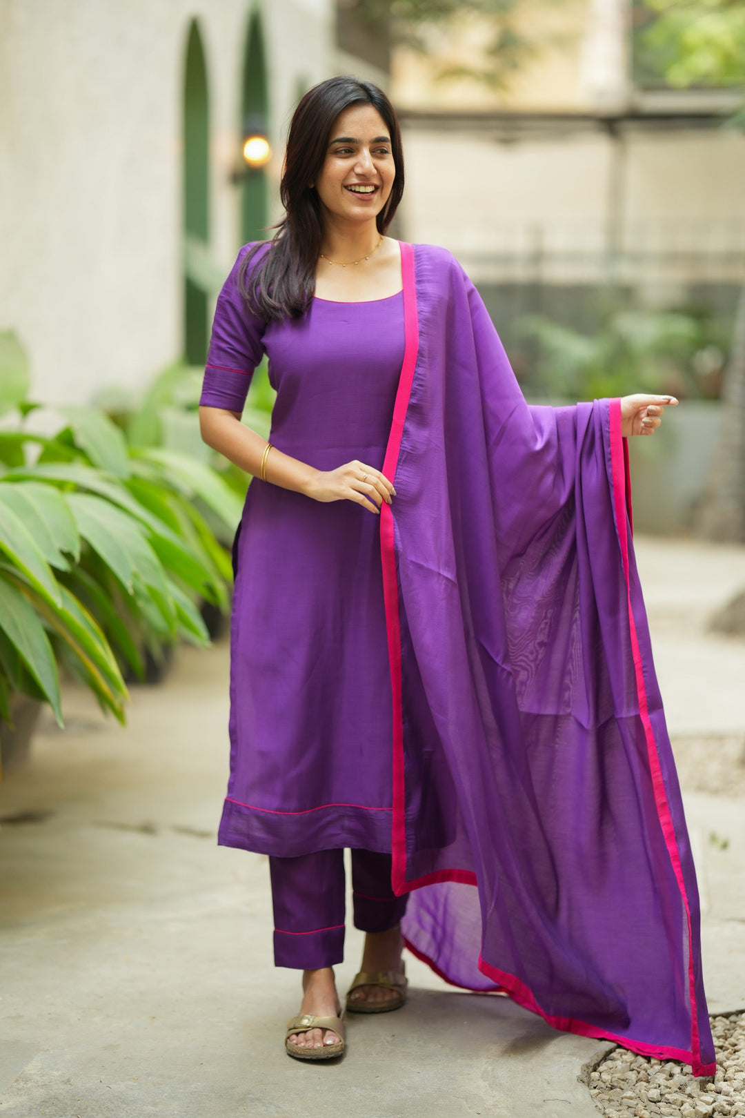 Tamizh Violet Kurti and Dupatta Set (Set of 2) | Made To Order