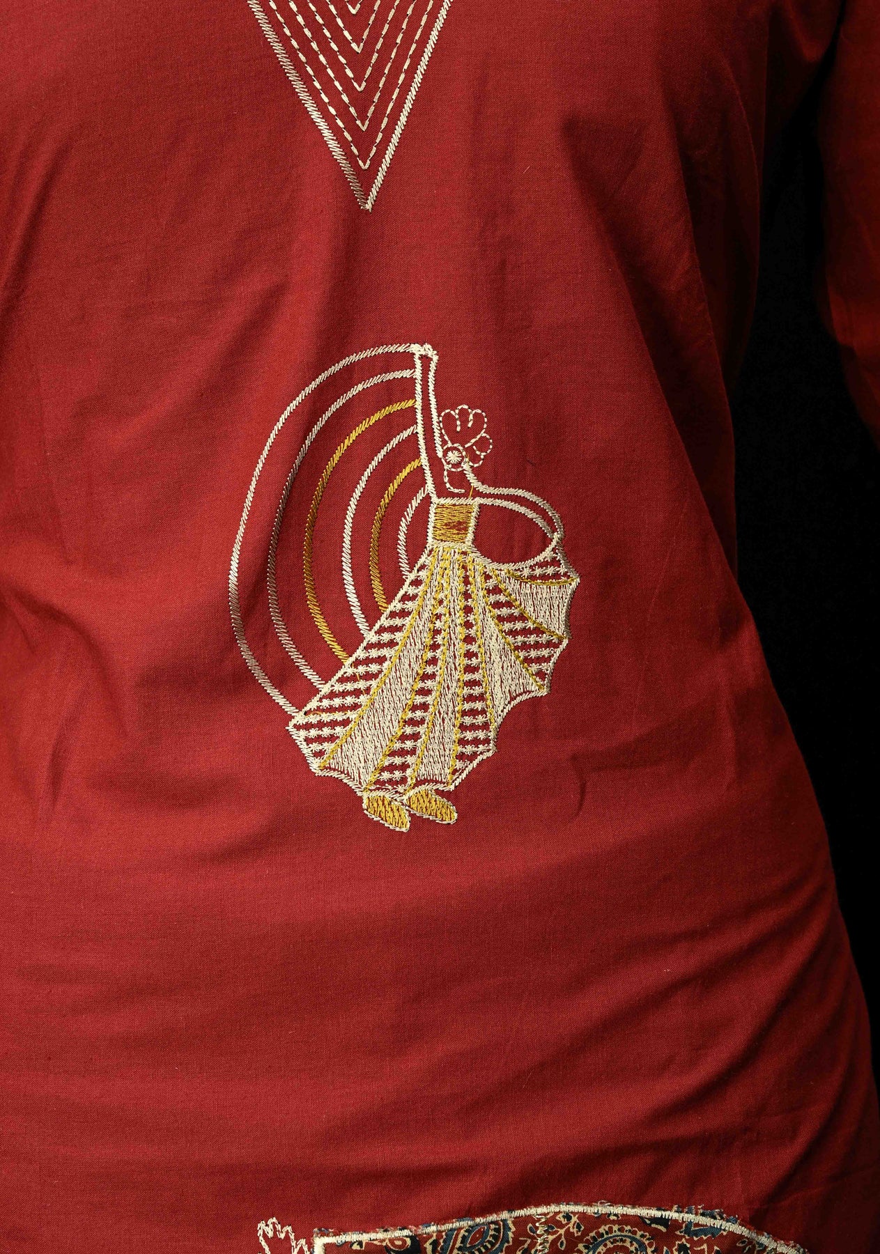 Elevate your everyday ethnic style with this handcrafted Cotton Jaipuri Print A-Line Kurti Set . Featuring a soothing blue base with classic block prints and a contrast handcrafted neckline, this set is designed for comfort and statement appeal. The set includes a matching straight-fit pant and is perfect for versatile daywear or festive gatherings. Experience effortless elegance in breathable cotton.